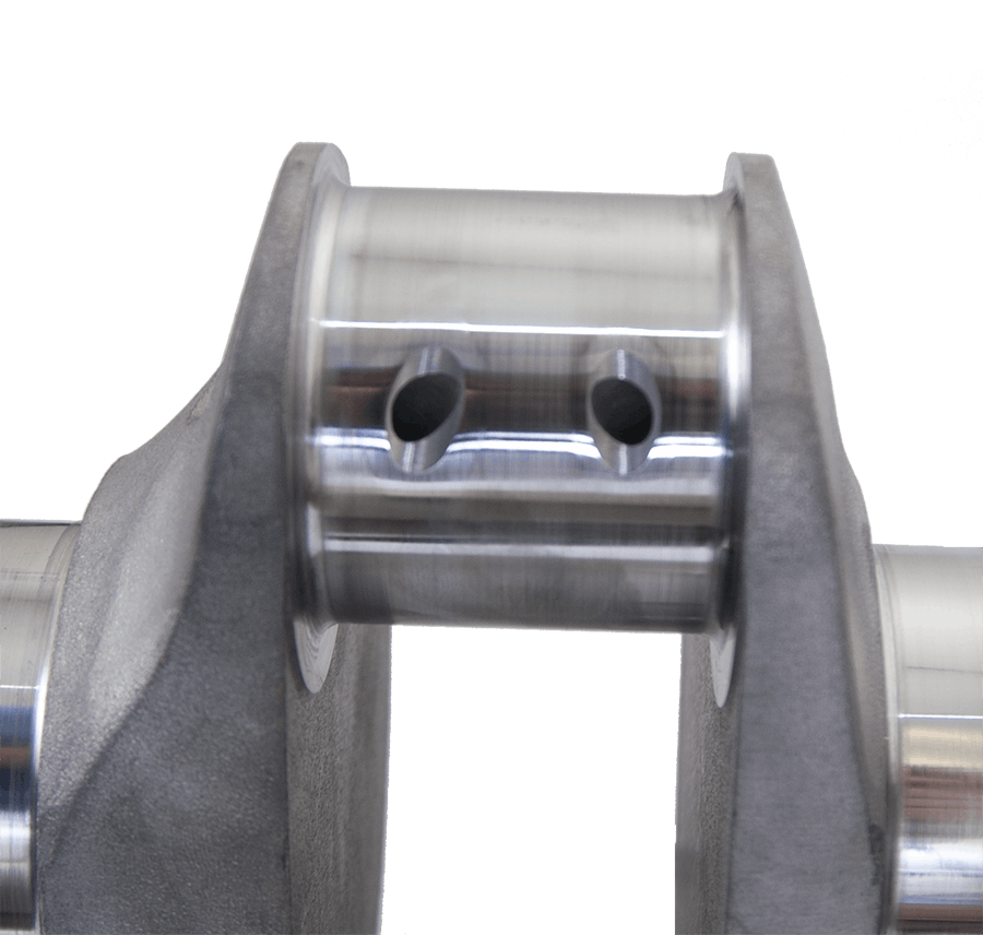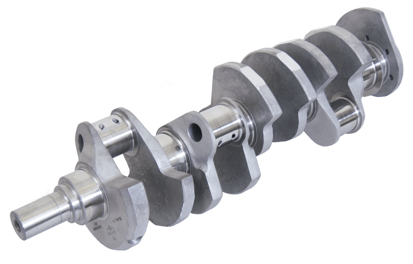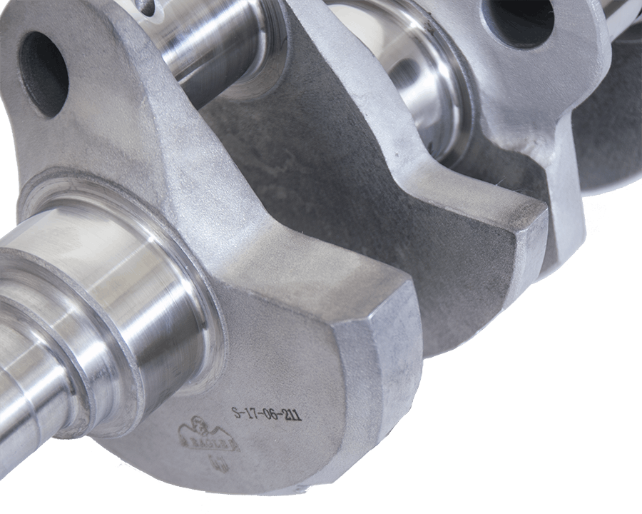 Eagle forged 4340 steel center-counterweighted Cranks feature a non-twist forging, center counterweights for added stability at high RPM and high-power applications. 125in fillet radiuses for superior strength so chamfered / narrowed bearings required, nitrided surface and micropolished. Intended for the most demanding applications.