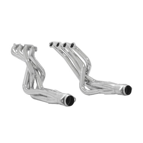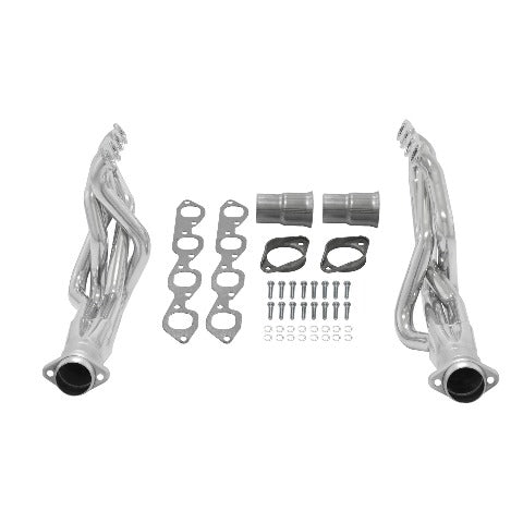 Flowmaster's Scavenger Series Elite long tube headers are designed to replace the restrictive factory cast iron manifolds. These high quality headers are manufactured from stainless steel and are ceramic coated for maximum durability. They feature 2 in. primary tubes, 3/8 in. thick flanges and incorporate Flowmaster's popular 3-1/2 in. ball flange collector connections ensuring a leak free installation. Scavenger Series long tube headers deliver maximum performance and are suited to the enthusiast who wants the best. Like all Flowmaster products the benefits include improved throttle response, power and engine efficiency. Designed for an easy fit these headers include gaskets and necessary hardware for easy installation. Will not fit with Saginaw close ratio 825 steering box. Big Block frame stands and motor mounts must be used to ensure proper engine location and header fit. Requires removal or modification of locking steering columns if equipped. Does not fit with Powerglide transmission. This product is legal only for off highway use except in California or states that have adopted California's emission standards, racing use or for use on pre emission controlled motor vehicles and motor vehicle engines and pre 1966 domestic vehicles certified to California standards and pre 1968 domestic vehicles certified to federal standards and all pre 1968 foreign vehicles, per the application guide.