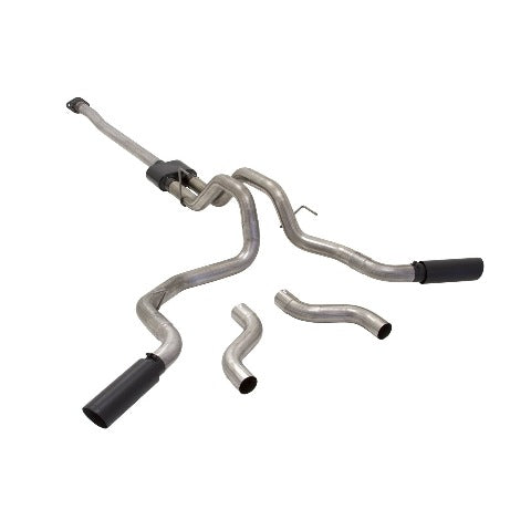 Flowmaster's Outlaw Cat-back exhaust system for the 2015-2019 Ford F-150 is perfect for the person looking for a very deep and aggressive sound level outside and inside the truck with all of the performance benefits that you would expect from Flowmaster. This exhaust is not for the faint of heart! This bolt-on DOR/DOS (Dual Out Rear, Dual Out Side) emissions-legal system for trucks with the 2.7L/3.5L Ecoboost, 3.5L TiVCT and 5.0L V8 engines features a Super 10 Series muffler and dual mandrel bent 3.00 tailpipes for maximum performance. The system is built out of 409S stainless steel and has 4.0 Black Stainless Steel Flowmaster Embossed tips. The exhaust system is covered by Flowmaster's Lifetime Limited Warranty. Designed for an easy fit, this system includes all necessary parts and hardware for installation.