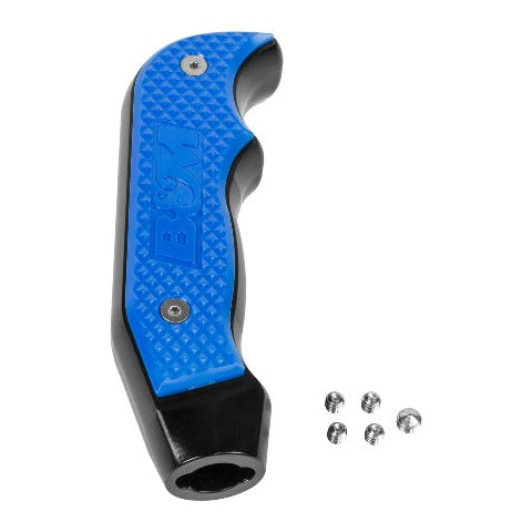 Patterned after the B&M magnum grip race shifters, the new XDR magnum grip replacement shift handle is CNC machined from billet aluminum. It is given a tough MIL-Spec black anodized finish and includes replaceable bright blue polycarbonate side grip plates for an aggressive modern look. Includes all necessary hardware and easy to follow installation instructions. Be sure to check out all the colors and finishes of side grip plates available for the magnum grip shifters to customize your vehicles interior.