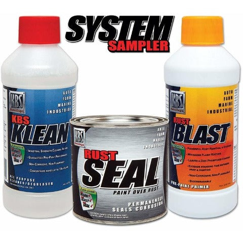 Everything you need to get started ;amp; try out our complete KBS system! A full 1/2 pint of RustSeal will cover an approx. 12 sq. ft. area with 2 coats. Experience the quality ;amp; durability for yourself. Our complete system in one package!
