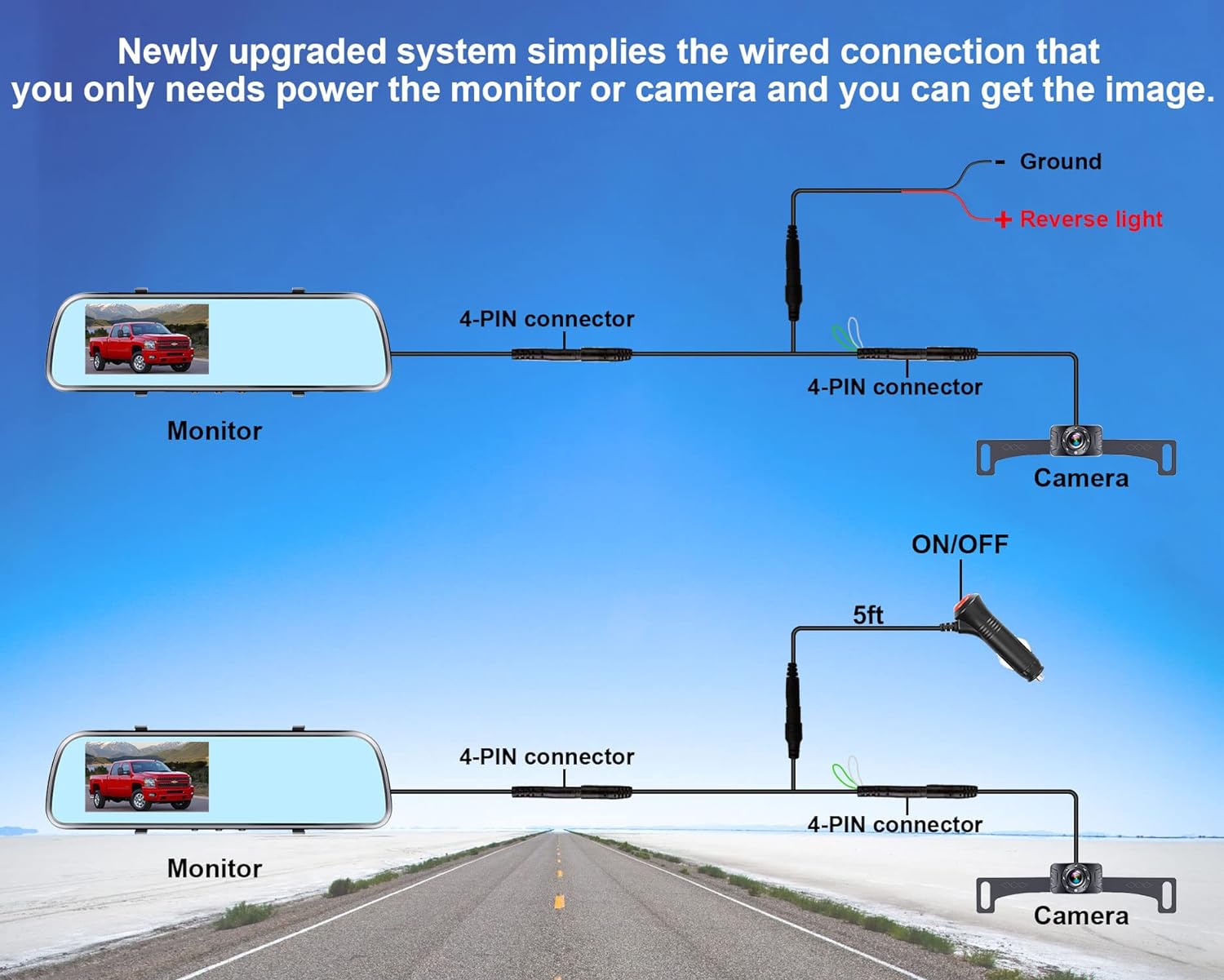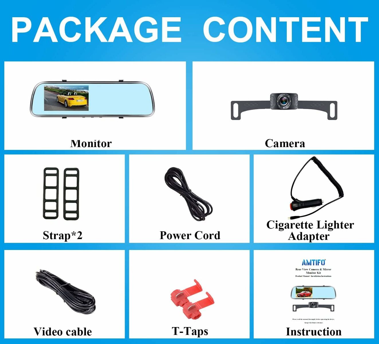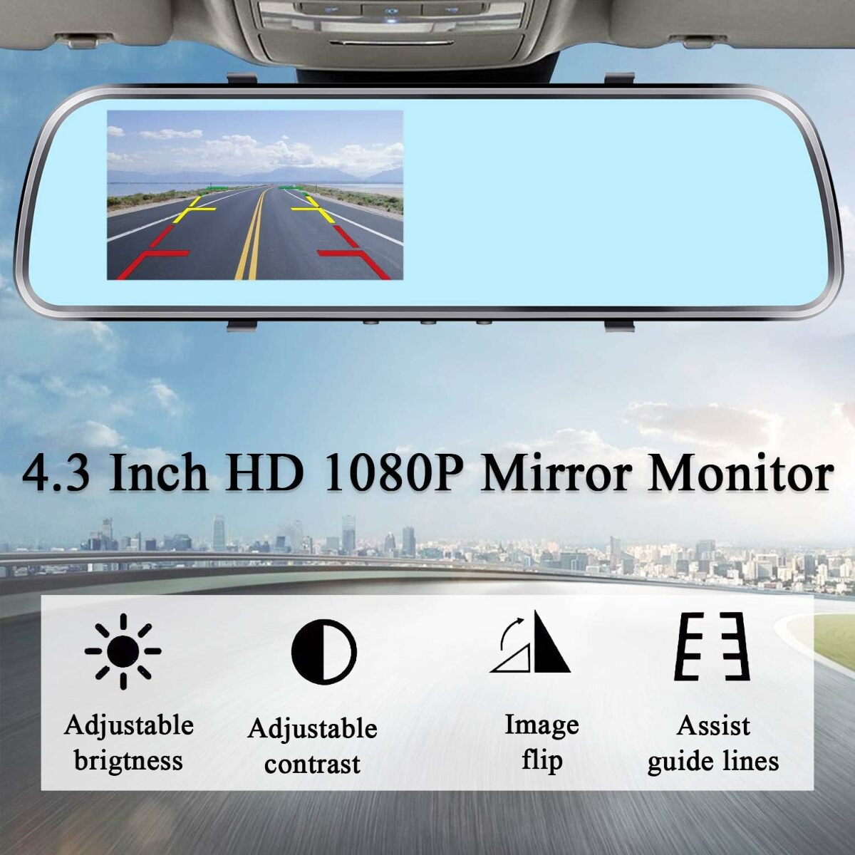 AMTIFO Backup Camera Mirror HD 1080P - Plug and Play Easy Set up Color Night Vision Rear View Mirror with License Plate Camera for Car Truck SUV Waterproof DIY Guide Lines A1