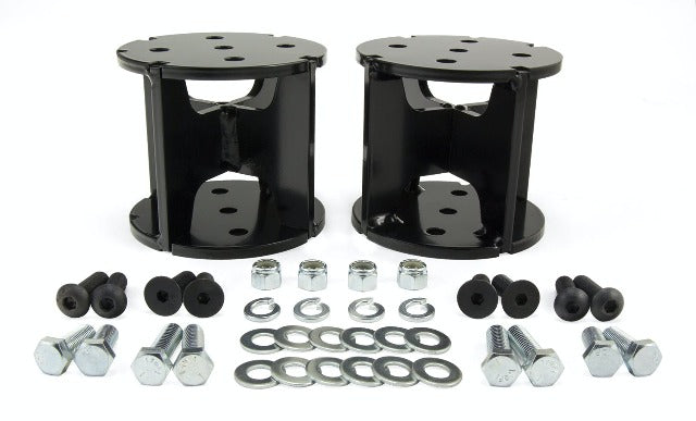 For drivers of lifted trucks, it's common to find that the towing and hauling capabilities of the stock suspension are compromised. With the new Universal Air Spring Spacers from Air Lift, drivers are now able to add a load support solution and restore the full potential of the vehicle. Available in 4 in. straight, 6 in. straight, 4 in. angled, and 6 in. angled varieties, the Universal Air Spring Spacers are designed to accommodate most lift kits, up to six inches. These high-quality, in. steel spacers are rated to handle more than 10 tons of force, making them tough enough to handle even the heaviest loads. With a unique spinal design, the spacers are easy to attach to bellows-style air spring systems, including Air Lift's best-selling LoadLifter 5000 series and LoadLifter 7500 XL, using the provided hardware. With air springs equipped, drivers of lifted vehicles will find that the towing and hauling capabilities of their vehicles are restored. Adding air springs will eliminate many common issues faced when towing and hauling heavy loads, including squat, poor headlight aim, trailer sway, and bottoming out. Drivers and passengers alike will notice that handling, ride quality, and braking power are all greatly improved. Each Universal Air Spring Spacer kit comes with a clear, easy-to-follow, fully illustrated instruction manual to make the installation process easy clear and simple. As the leader in air suspension products for more than 65 years, Air Lift is committed to delivering quality load support parts that last. The key suspension components have all been torture-tested to ensure the highest quality, longevity, and customer satisfaction. With a limited-lifetime warranty, you can purchase this kit with peace of mind. Take your existing air suspension solution to the next level of safety and comfort with Universal Air Spring Spacers today!