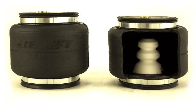 LoadLifter 5000 ULTIMATE adjustable air spring kits feature all of the benefits of our heaviest rated air spring with the addition of an internal jounce bumper inside the spring for the ultimate in ride comfort. An Air Lift exclusive product. Fits vehicles with in-bed hitches. Tow and haul the heaviest loads with safety and comfort with LoadLifter 5000 ULTIMATE. Works with vehicle's leaf springs to provide up to 5,000 lbs. of front load leveling capacity and keeps the vehicle riding stable, level and comfortable whether loaded or unloaded. Fully adjustable from 5 to 100 PSI. The closed-cell urethane foam jounce bumper inside the ULTIMATE air springs provide a cushion of air that absorbs shock, eliminates harsh jarring on rough roads and protects vehicles carrying heavy loads. Never bottom out again with the ULTIMATE! LoadLifter 5000 ULTIMATE air springs are maintenance free! Safely run with zero air pressure because of the internal jounce bumper. Replaces factory jounce bumper that is sometimes removed when adding air springs. Easy to install in less than 2 hours. Includes industry-exclusive 60 Day No Questions Money Back Guarantee! Includes the most comprehensive Lifetime Warranty in the industry---covers all kit contents including brackets, fittings and air line. Air springs are built like a tire and are reinforced by durable, 2-ply fabric for maximum strength. Exclusive upper and lower roll plates included. Protect the springs from sharp edges, such as brackets or the frame. They increase load capacity up to 10%. The kit includes 2 air springs, brackets, air lines, Schrader valve and all of the hardware needed for installation. Includes fully illustrated instruction manual. Add an Air Lift on-board air compressor system to inflate and deflate air springs with the touch of a button from inside or outside of the vehicle.