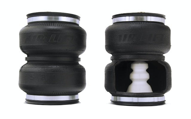 LoadLifter 5000 ULTIMATE adjustable air spring kits feature all of the benefits of our heaviest rated air spring with the addition of an internal jounce bumper inside the spring for the ultimate in ride comfort. An Air Lift exclusive product! Fits vehicles with in-bed hitches. Tow and haul the heaviest loads with safety and comfort with LoadLifter 5000 ULTIMATE. Works with vehicle's leaf springs to provide up to 5,000 lbs. of rear load leveling capacity and keeps the vehicle riding stable, level and comfortable whether loaded or unloaded. Fully adjustable from 5 to 100 PSI. The closed-cell urethane foam jounce bumper inside the ULTIMATE air springs provide a cushion of air that absorbs shock, eliminates harsh jarring on rough roads and protects vehicles carrying heavy loads. Never bottom out again with the ULTIMATE! LoadLifter 5000 ULTIMATE air springs are maintenance free! Safely run with zero air pressure because of the internal jounce bumper. Replaces factory jounce bumper that is sometimes removed when adding air springs. Requires no drilling into frame! Includes industry-exclusive 60 Day No Questions Money Back Guarantee! Includes the most comprehensive Lifetime Warranty in the industry---covers all kit contents including brackets, fittings and air line. Air springs are built like a tire and are reinforced by durable, 2-ply fabric for maximum strength. Exclusive upper and lower roll plates included. Protect the springs from sharp edges, such as brackets or the frame. They increase load capacity up to 10%. The kit includes 2 air springs, brackets, air lines, Schrader valve and all of the hardware needed for installation. Includes fully illustrated instruction manual. Add an Air Lift on-board air compressor system to inflate and deflate air springs with the touch of a button from inside or outside of the vehicle.
