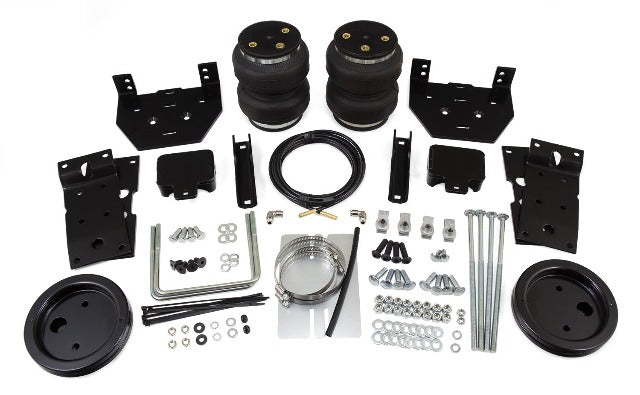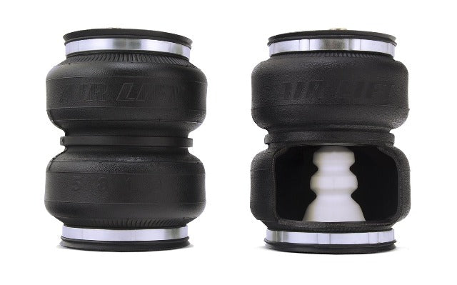 LoadLifter 5000 ULTIMATE adjustable air spring kits feature all of the benefits of our heaviest rated air spring with the addition of an internal jounce bumper inside the spring for the ultimate in ride comfort. An Air Lift exclusive product! Fits vehicles with in-bed hitches. Tow and haul the heaviest loads with safety and comfort with LoadLifter 5000 ULTIMATE. Works with vehicle's leaf springs to provide up to 5,000 lbs. of rear load leveling capacity and keeps the vehicle riding stable, level and comfortable whether loaded or unloaded. Fully adjustable from 5 to 100 PSI. The closed-cell urethane foam jounce bumper inside the ULTIMATE air springs provide a cushion of air that absorbs shock, eliminates harsh jarring on rough roads and protects vehicles carrying heavy loads. Never bottom out again with the ULTIMATE! LoadLifter 5000 ULTIMATE air springs are maintenance free! Safely run with zero air pressure because of the internal jounce bumper. Replaces factory jounce bumper that is sometimes removed when adding air springs. Easy to install in less than 2 hours. Requires no drilling into frame! Includes industry-exclusive 60 Day No Questions Money Back Guarantee! Includes the most comprehensive Lifetime Warranty in the industry---covers all kit contents including brackets, fittings and air line. Air springs are built like a tire and are reinforced by durable, 2-ply fabric for maximum strength. Exclusive upper and lower roll plates included. Protect the springs from sharp edges, such as brackets or the frame. They increase load capacity up to 10%. The kit includes 2 air springs, brackets, air lines, Schrader valve and all of the hardware needed for installation. Includes fully illustrated instruction manual. Add an Air Lift on-board air compressor system to inflate and deflate air springs with the touch of a button from inside or outside of the vehicle.