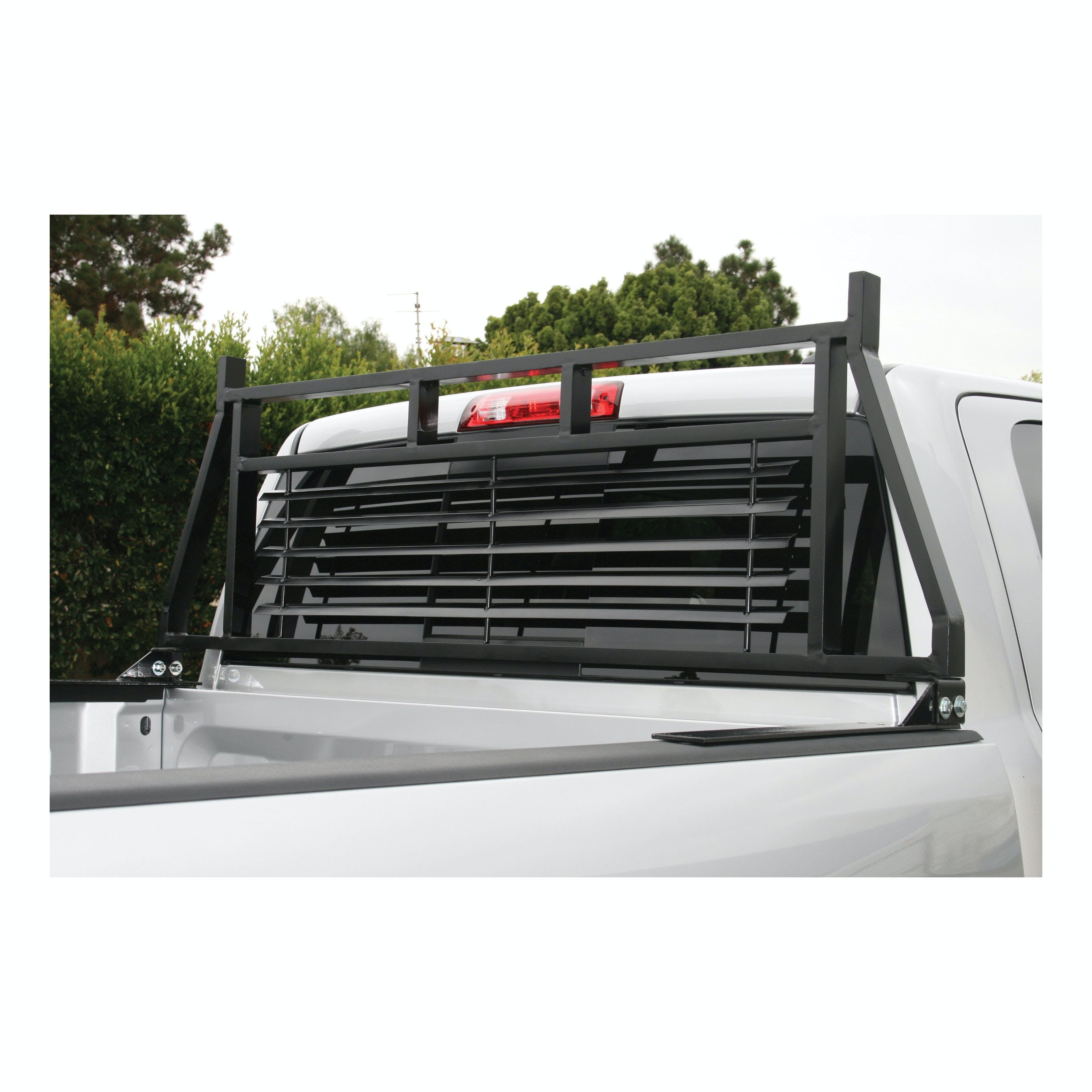 For the heavy-duty hauler and hardworking trailer blazer, a headache rack is a must-have truck accessory. It does not take much for a two-by-four, steel pipe or other loose cargo to put a good size crack in the rear window of your truck cab, especially when you stick to the off-road trail more than the paved road. The ARIES classic headache rack offers a hardy design and sturdy structure to make sure your truck is ready to work. Made from 1" x 2" carbon steel tubing, ARIES classic headache racks provide excellent protection for your truck cab, from both the heat of the sun and potential impact from unsecure cargo in your truck bed. The full louvers help keep your cab cooler throughout the day, and their heavy-duty construction helps block any damage from behind. The ARIES classic headache rack also features a dual-layer E-coat and semi-gloss black powder coat finish to maintain its sleek appearance, preventing damage from rust, scratches and UV rays. Installation is quick and easy with the ARIES headache rack. It is compatible with cross-bed truck tool boxes and includes all necessary hardware for a complete installation. When your pickup truck is more than just a show horse, ARIES has you covered. We understand that it's about more than goofing off in the mud. When you have a job to finish and a workhorse to drive, an ARIES classic headache rack is a reliable tool in your belt.