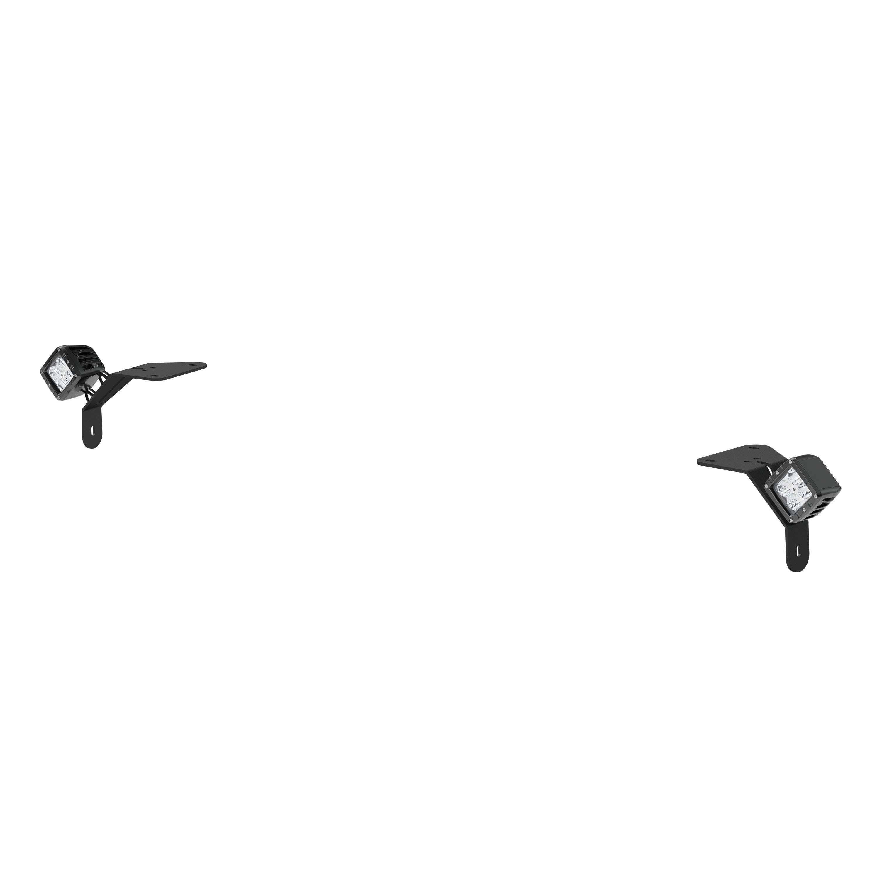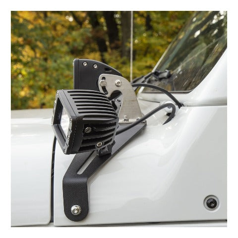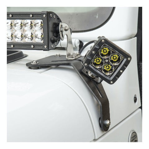 If you know the feeling of your tires treading through sand, the sense of adventure that comes at the start of a new trail or the taste of the open air at the top of a mountain, you know a little of what it feels like to own a Jeep. There is a sense of possibility unlike any other that comes every time you grip the wheel and throw the transmission into drive. Taking your Jeep experience to the next level means outfitting your 4x4 with truck accessories that are built for adventure. ARIES Jeep windshield light brackets allow you to mount work lights on your Jeep Wrangler or Jeep Gladiator, using the windshield hinges. They require no drilling and provide useful light for the road or trail ahead. This set of brackets comes with ARIES 2" square LED work lights and waterproof wiring harnesses for a complete installation. They feature high-strength carbon steel construction and come with a durable black powder coat finish for lasting protection against the off-road elements.