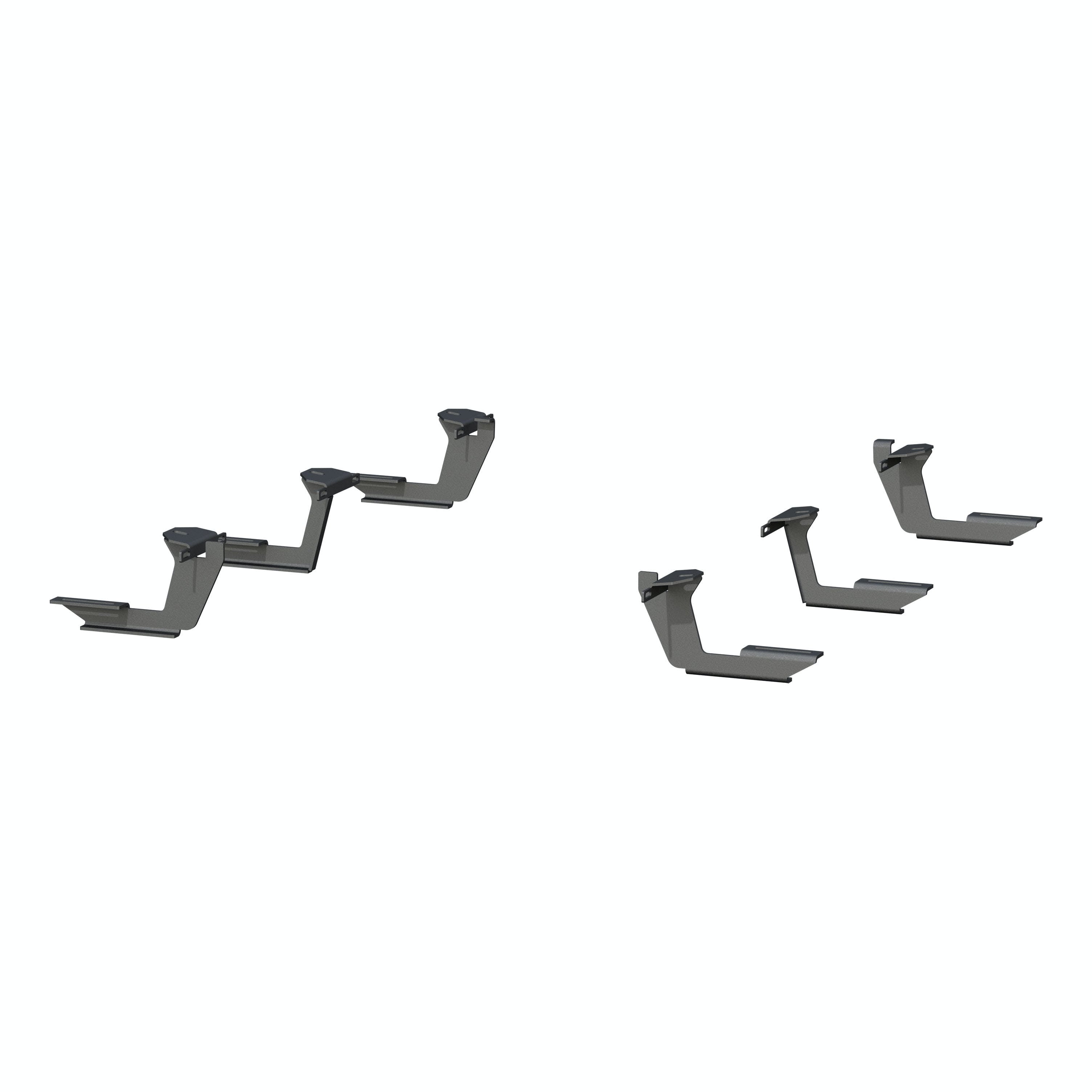 While many side accessories feature a universal track mounting system for easier installation and inventory requirements, the ARIES VersaTrac mounting system takes things a step further. VersaTrac uses a single set of vehicle-specific brackets to accommodate different side accessory options. This not only means different finish options but also different products entirely. With the brackets installed, any side bar or running board equipped with the VersaTrac mounting system can be attached or swapped out whenever desired. The VersaTrac mounting system saves you time and money. It eliminates the need to purchase and install an entirely new set of mounting brackets with each new side accessory. The mounting brackets are available for purchase as a stand-alone item or as part of a complete kit with compatible side bars and running boards. Use the application information to determine which part numbers will fit your vehicle.