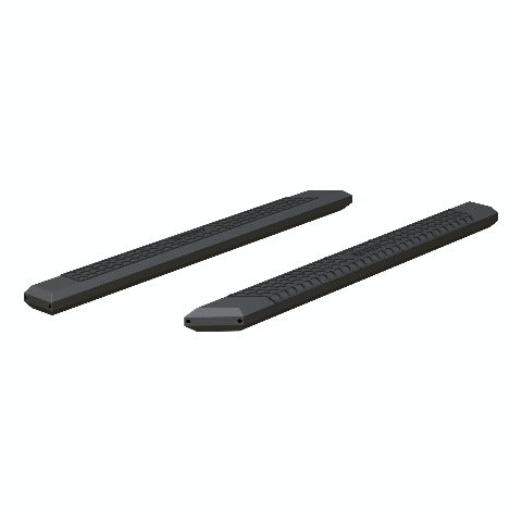 ARIES AdvantEDGE side bars do away with the common, rounded look of other side bars and nerf bars, featuring an angular, eight-sided tube profile and powder-coated all-aluminum construction. The angular edges provide a clear-cut, uncompromising accent for the look of today's trucks. Made from 5-1/2" wide, eight-sided, extruded aluminum tubing, AdvantEDGE side bars are strong, lightweight and impervious to rust, offering a solid step that is built to face the elements and outlast them. They also come with die-cast aluminum end caps and a stamped aluminum tread. The aluminum treads provide a long-lasting, non-skid stepping surface that will not crack or fade in the sun. ARIES AdvantEDGE side bars are also marked for their easy, custom-fit installation. They feature the ARIES VersaTrac mounting system with brackets that are made from powder-coated steel and built for specific vehicles (NOTE: VersaTrac mounting brackets are sold separately; see application information to determine which brackets and side bars fit your vehicle). The high-strength steel brackets mount using pre-existing holes, and the side bars attach to the brackets with heavy-duty hardware and a full-length channel. The VersaTrac mounting system makes installation simple and customizable, allowing the side bars to be swapped out at any time with other side steps or running boards that feature the VersaTrac system. Setting yourself apart is simple with the ARIES AdvantEDGE series. In addition to our AdvantEDGE side bars, we also offer the AdvantEDGE bull bar and AdvantEDGE headache rack, featuring the same all-aluminum construction and eight-sided tube profile. For a fully customized look to match your pickup, AdvantEDGE side bars are available in two finish options, including carbide black powder coat or chrome powder coat.