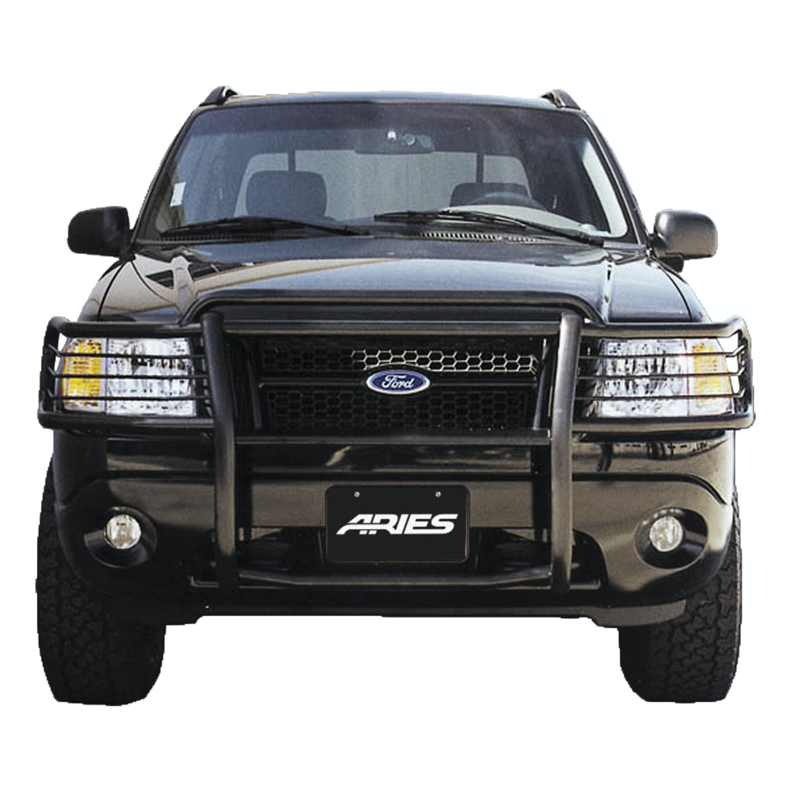 For the conqueror in every truck, Jeep or SUV owner, the ARIES grille guard offers the tough, trail-ready look you demand. It begins with a one-piece frame of 1/4" thick welded plates and 1-1/2" mandrel-bent tubing for a solid build. Each one is made with a vehicle-specific design for a better fit, easier install and more secure mounting. The side brush guards are custom-bent to contour to the profile of your vehicle, while the mounting brackets are positioned for a no-drill application. This means pre-existing factory holes are used to ensure optimum fitment and less vibration. This particular custom grille guard fits specific years of the Ford Explorer and Explorer Sport Trac (see application info to verify). The ARIES grille guard also makes it easy to customize the look of your vehicle. Not only does the crossbar have two pre-drilled holes for mounting aftermarket LED lights, but many of our grille guards are also available in two finish options -- polished stainless steel or semi-gloss black steel. The stainless steel grille guard is made with 304 stainless, being high in nickel content and truly resistant to rust and corrosion. This option comes with a mirror-like polished finish for a definitive shine. The semi-gloss black grille guard is made with high-strength carbon steel for added strength. It features a tough, dual-layer E-coat and black powder coat finish to protect against rust, scratches and the elements. All ARIES grille guards also come with rubber stripping along the risers to protect the frame against scuffs and scratches.
