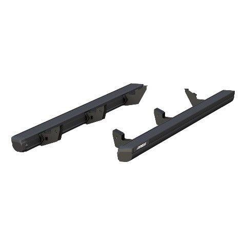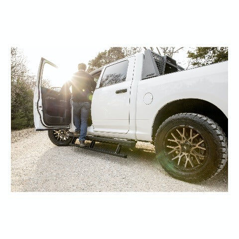 ARIES ActionTrac powered running boards are unique from other power side steps because they are actually two steps in one. This patented step-within-a-step design -- combined with a no-drill bracket installation, control module operation and powder-coated aluminum construction -- truly makes these retractable running boards an asset for the offroad truck or Jeep, particularly as lifted truck steps. ActionTrac powered running boards have one 4" wide step on top of the main housing and one 3" wide that automatically deploys as needed. When the door opens, the control module deploys the power step 8" below the main step, 15" below the doorsill, depending on the model. This two-step design offers enhanced safety and easier vehicle entry and exit, especially on large, lifted vehicles. It's also very helpful for families with young children and for elderly passengers. The boards contour to the vehicle and offer extra protection for the rocker panels from small road debris. For additional safety, the module is able to detect any obstructions during operation to avoid pinch hazards. LED lights are also built into the housing to illuminate the steps when deployed. ARIES ActionTrac powered running boards are made for vehicle-specific installation for a custom fit. They use pre-existing factory holes for the brackets to eliminate drilling. They also do not require any splicing into factory wiring. These particular running boards fit specific years of the Toyota Tundra (see application info to verify fitment). Each set is constructed from powder-coated aluminum to be strong, lightweight and non-corrosive. The quiet, maintenance-free rotary motor is shielded within the main housing, along with the power step pivot points and all electrical components, protecting them from the harsh elements. NOTE: Boards, brackets and wiring are included.