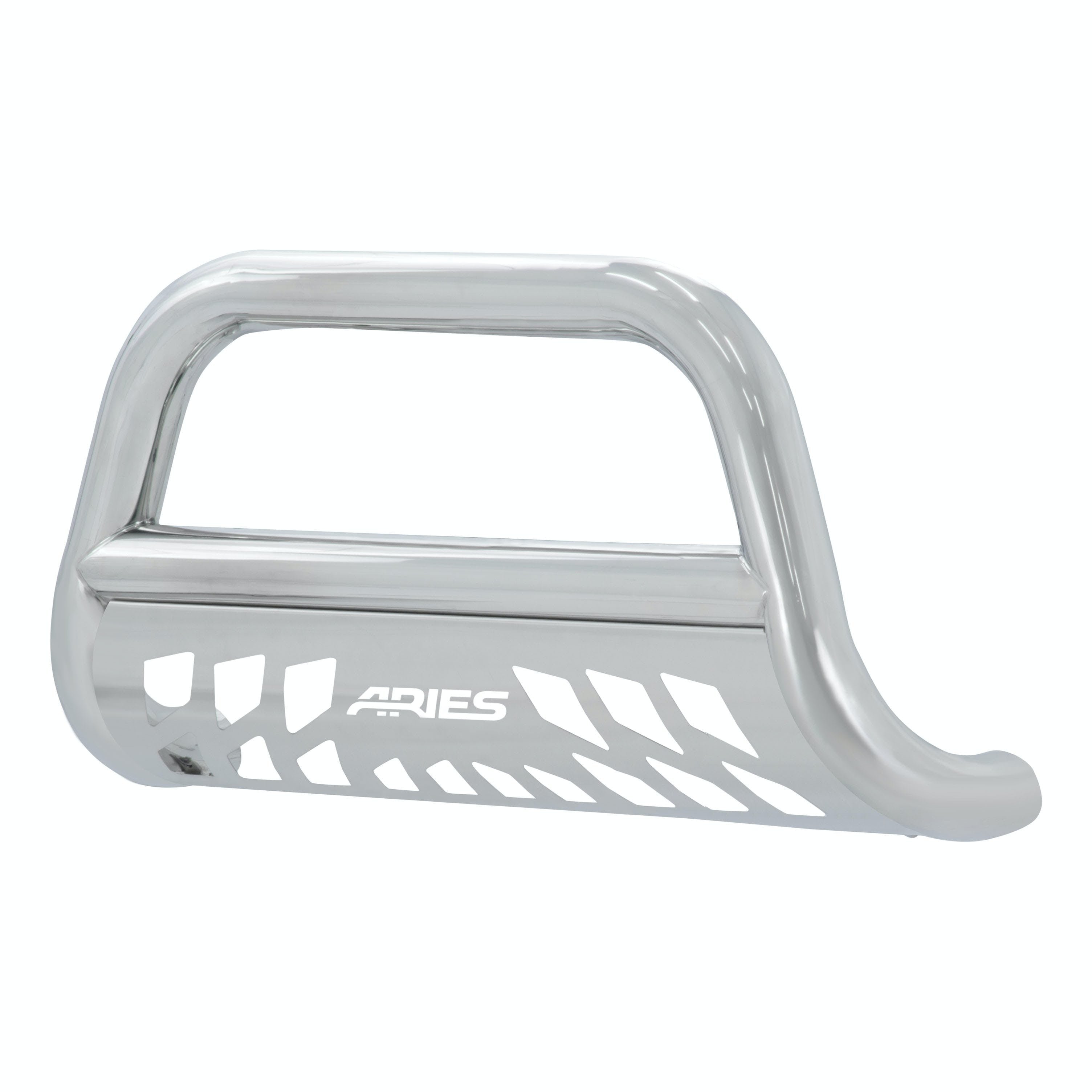The ARIES 3" bull bar is made for those who face the uncertain road without fear. This particular model is constructed from 304 stainless steel. 304 stainless is high in nickel content, allowing the bull bar to easily resist water, road salt and rust and maintain its mirror-like polished finish in spite of the elements. Other available finishes include high-gloss black stainless steel, textured black steel and semi-gloss black steel. Customizing the look of your vehicle is simple with the ARIES 3" bull bar. It is equipped with pre-drilled light mounting holes and a removable skid plate. The center crossbar features two pre-drilled holes that readily accept an LED light bar or two LED work lights. The skid plate is made from 304 stainless steel and has a brushed finish to stop rust and hide scratches and scuffs. It also features an aggressive, ARIES-exclusive cutout pattern and can be removed for a customized look. Each ARIES 3" bull bar is made a vehicle-specific design, meaning that for each make and model, the bull bar has a custom bend and unique mounting brackets. This allows for the best possible fit on your vehicle and ensures solid attachment. The brackets also use pre-existing factory holes in the vehicle's frame to eliminate drilling, speed up installation and increase rigidity. This bull bar fits select model years of the Freightliner or Mercedes-Benz Sprinter 2500 and 3500 (see application info to verify fitment).