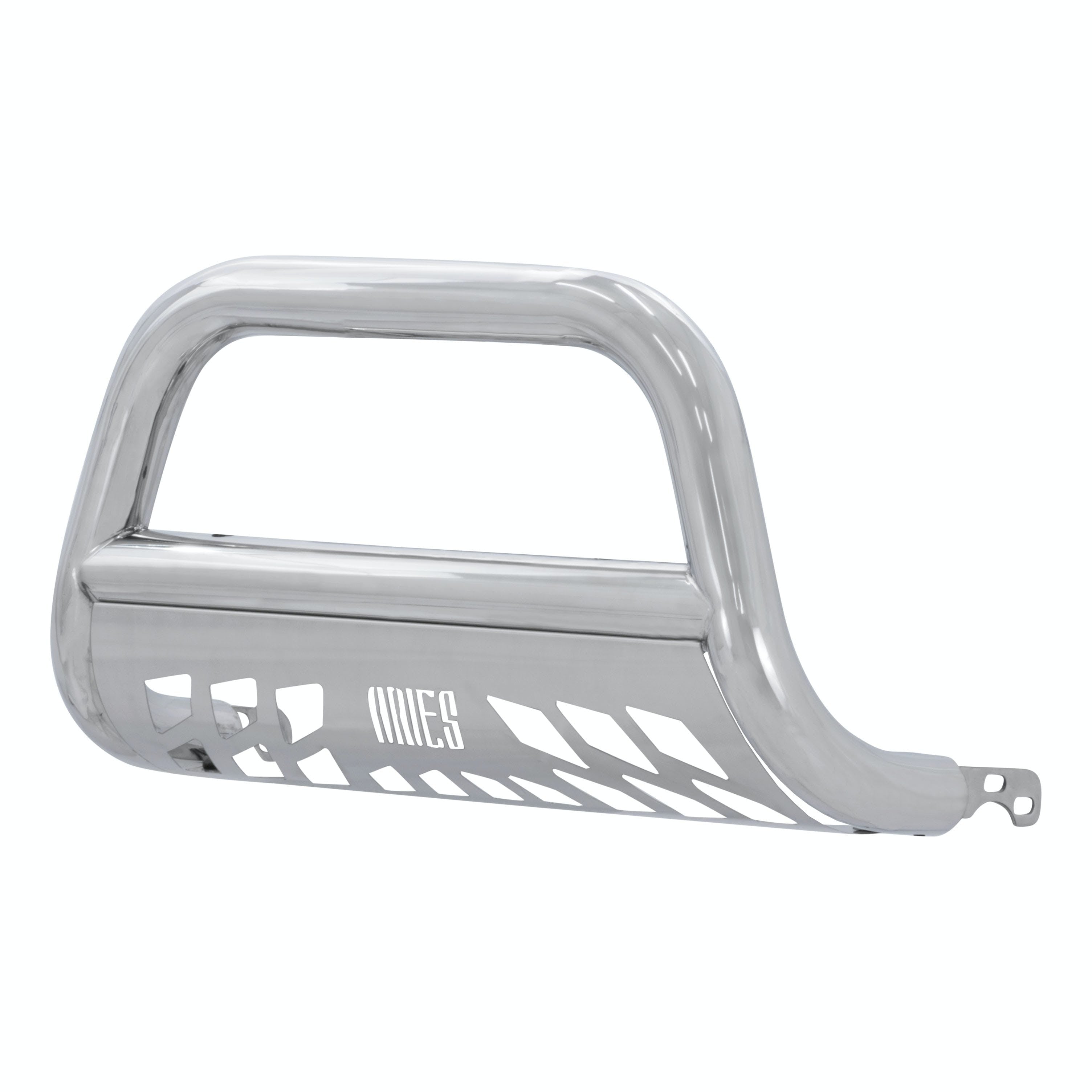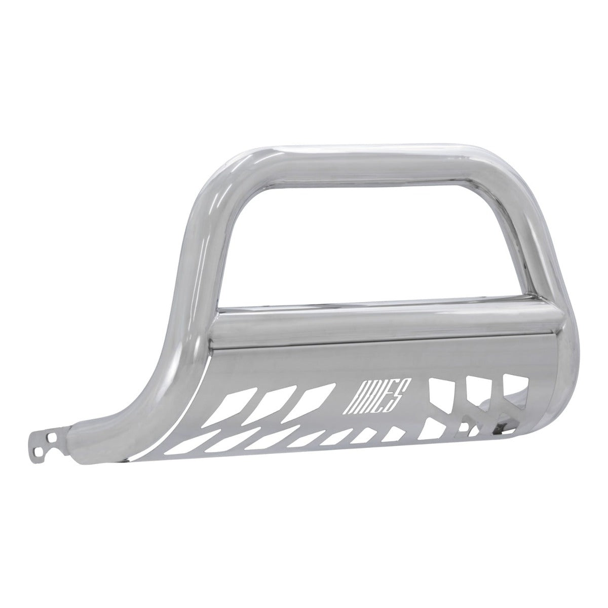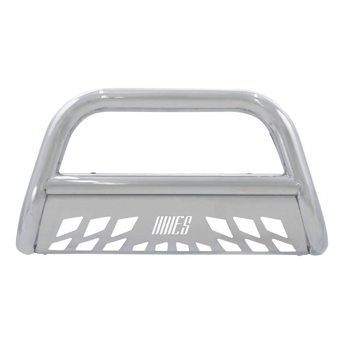 The ARIES 3" bull bar is made for those who face the uncertain road without fear. This particular model is constructed from 304 stainless steel. 304 stainless is high in nickel content, allowing the bull bar to easily resist water, road salt and rust and maintain its mirror-like polished finish in spite of the elements. Other available finishes include high-gloss black stainless steel, textured black steel and semi-gloss black steel. Customizing the look of your vehicle is simple with the ARIES 3" bull bar. It is equipped with pre-drilled light mounting holes and a removable skid plate. The center crossbar features two pre-drilled holes that readily accept an LED light bar or two LED work lights. The skid plate is made from 304 stainless steel and has a brushed finish to stop rust and hide scratches and scuffs. It also features an aggressive, ARIES-exclusive cutout pattern and can be removed for a customized look. Each ARIES 3" bull bar is made a vehicle-specific design, meaning that for each make and model, the bull bar has a custom bend and unique mounting brackets. This allows for the best possible fit on your vehicle and ensures solid attachment. The brackets also use pre-existing factory holes in the vehicle's frame to eliminate drilling, speed up installation and increase rigidity. This bull bar fits select model years of the Nissan Frontier, Pathfinder and Xterra (see application info to verify fitment).