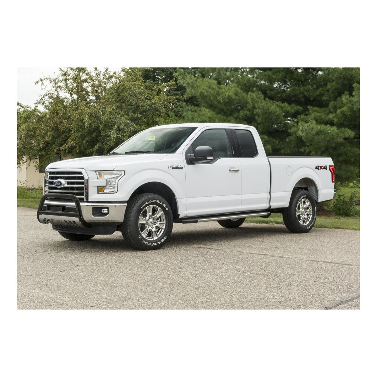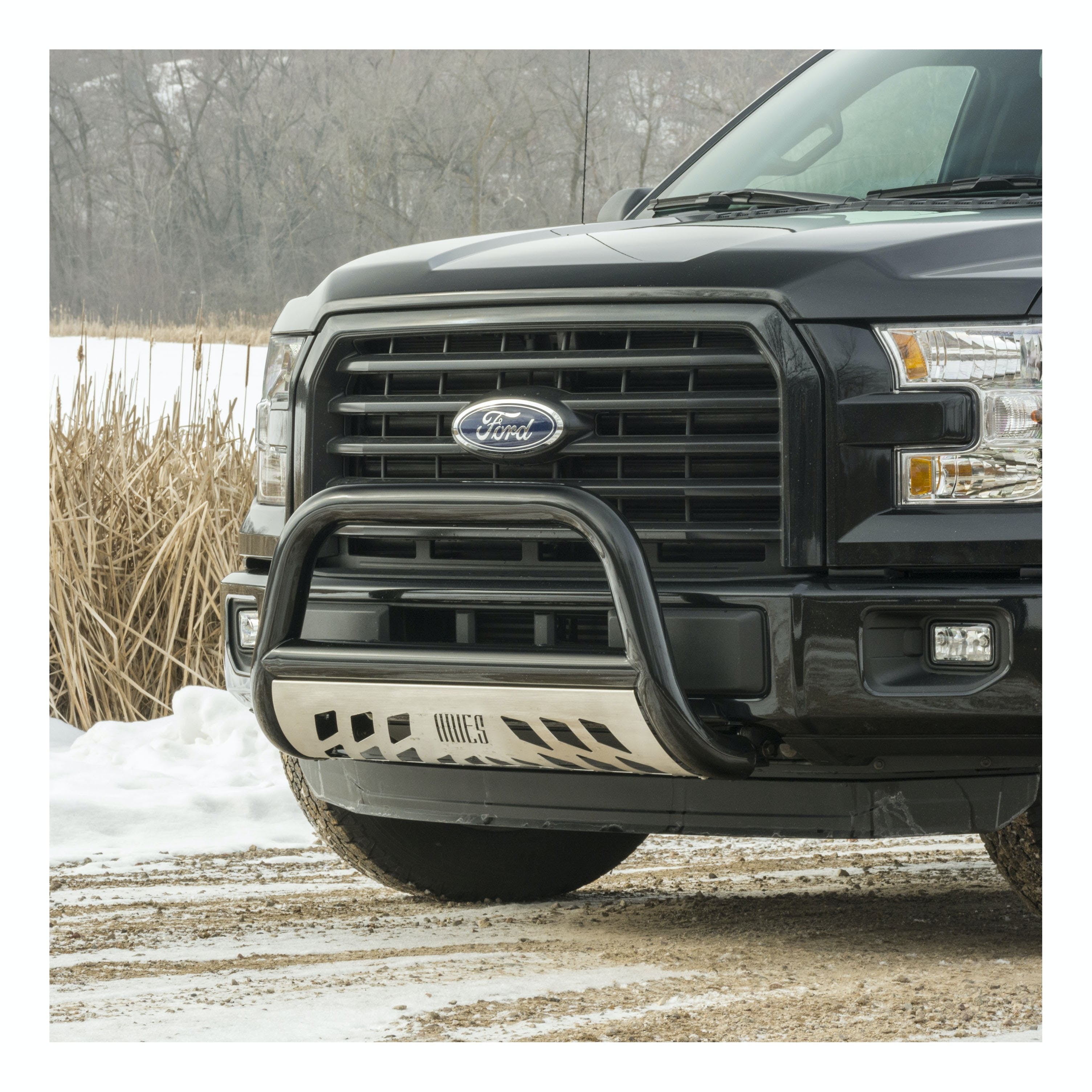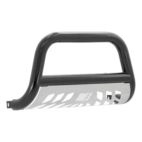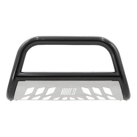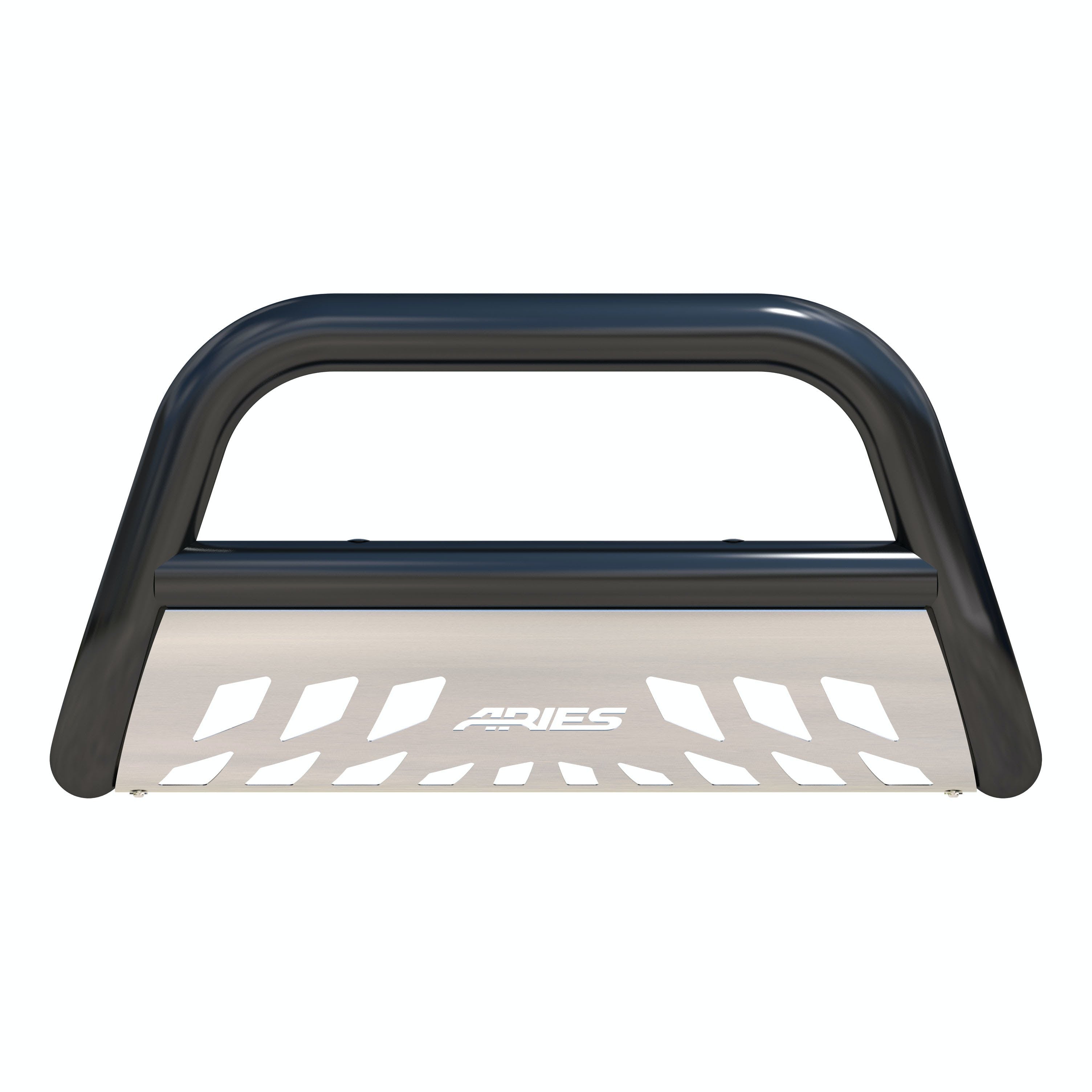 The ARIES 3" bull bar is made for those who face the uncertain road without fear. This particular model is constructed from strong carbon steel and finished in a durable E-coat and semi-gloss black powder coat finish to outlast rust and the elements. Other available finishes include high-gloss black stainless steel, polished stainless steel and textured black steel. Customizing the look of your vehicle is simple with the ARIES 3" bull bar. It is equipped with pre-drilled light mounting holes and a removable skid plate. The center crossbar features two pre-drilled holes that readily accept an LED light bar or two LED work lights. The skid plate is made from 304 stainless steel and has a brushed finish to stop rust and hide scratches and scuffs. It also features an aggressive, ARIES-exclusive cutout pattern and can be removed for a customized look. Each ARIES 3" bull bar is made a vehicle-specific design, meaning that for each make and model, the bull bar has a custom bend and unique mounting brackets. This allows for the best possible fit on your vehicle and ensures solid attachment. The brackets also use pre-existing factory holes in the vehicle's frame to eliminate drilling, speed up installation and increase rigidity. This bull bar fits select model years of the Ford Expedition, Ford F-150 and Lincoln Mark LT (see application info to verify fitment).