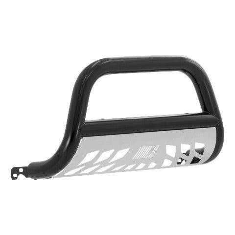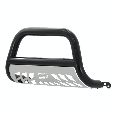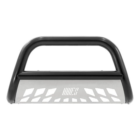 The ARIES 3" bull bar is made for those who face the uncertain road without fear. This particular model is constructed from strong carbon steel and finished in a durable E-coat and semi-gloss black powder coat finish to outlast rust and the elements. Other available finishes include high-gloss black stainless steel, polished stainless steel and textured black steel. Customizing the look of your vehicle is simple with the ARIES 3" bull bar. It is equipped with pre-drilled light mounting holes and a removable skid plate. The center crossbar features two pre-drilled holes that readily accept an LED light bar or two LED work lights. The skid plate is made from 304 stainless steel and has a brushed finish to stop rust and hide scratches and scuffs. It also features an aggressive, ARIES-exclusive cutout pattern and can be removed for a customized look. Each ARIES 3" bull bar is made a vehicle-specific design, meaning that for each make and model, the bull bar has a custom bend and unique mounting brackets. This allows for the best possible fit on your vehicle and ensures solid attachment. The brackets also use pre-existing factory holes in the vehicle's frame to eliminate drilling, speed up installation and increase rigidity. This bull bar fits select model years of the Honda Pilot and Honda Ridgeline (see application info to verify fitment).