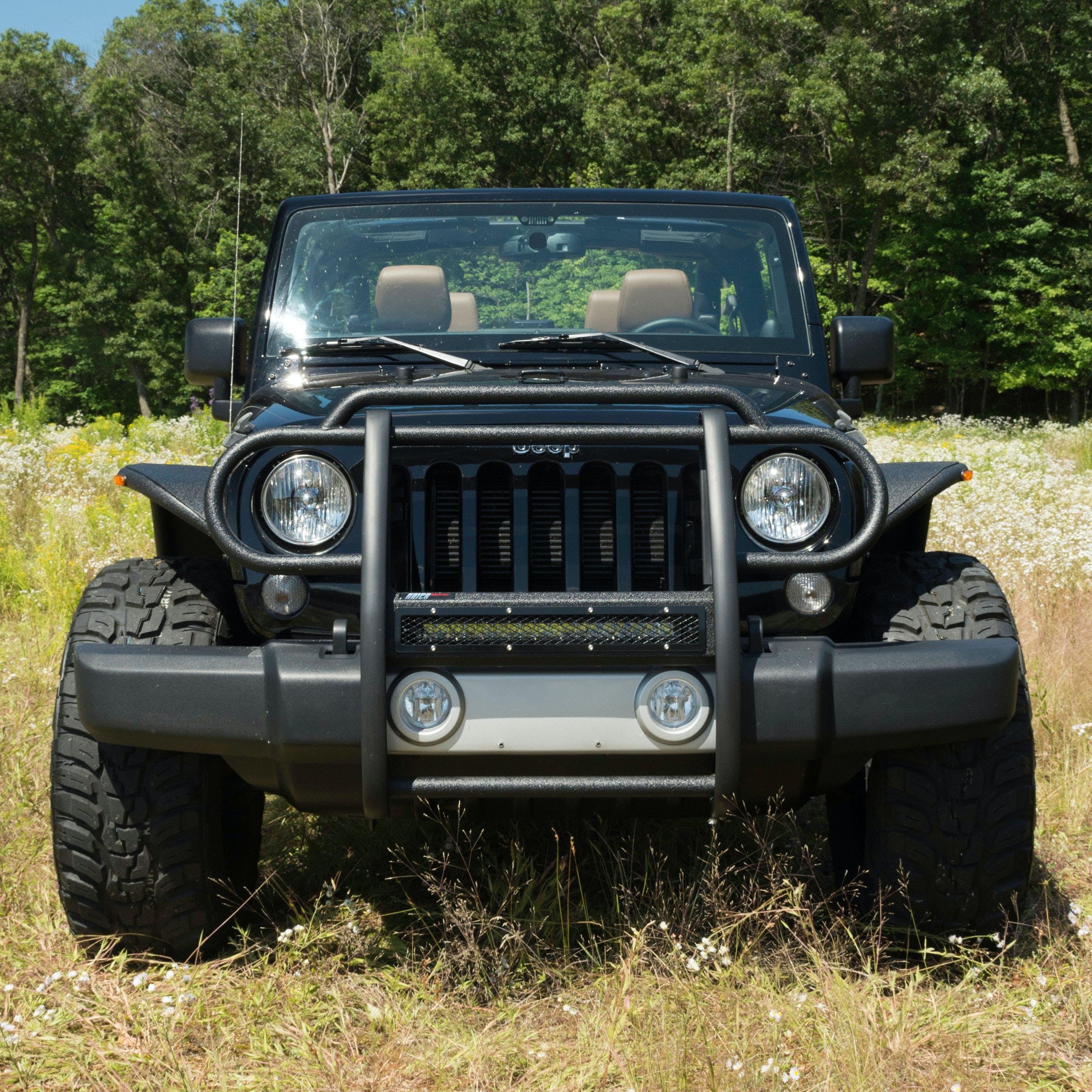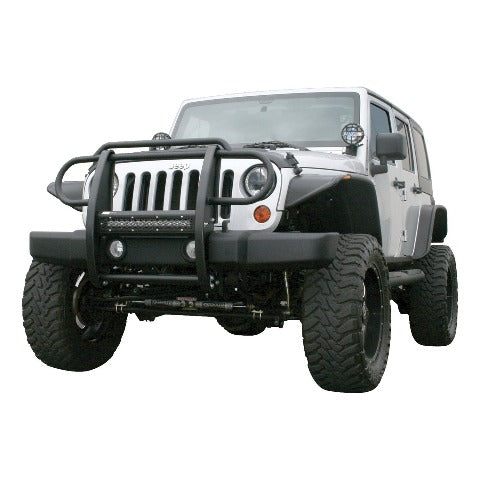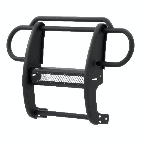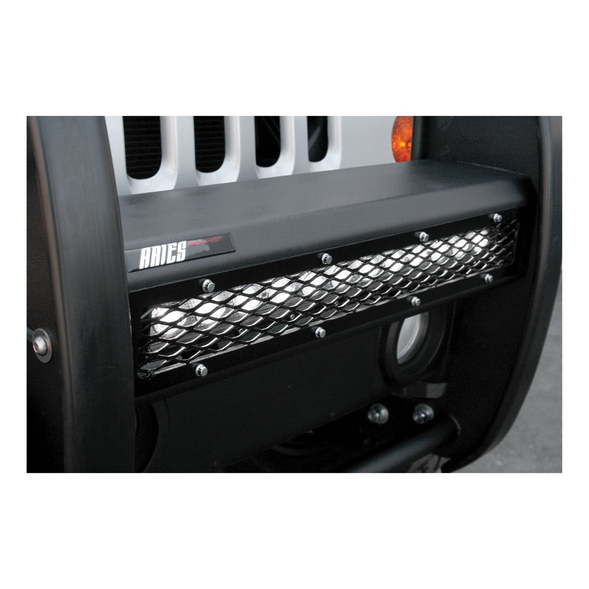 The ARIES Pro Series grille guard is unlike any other grille guard or brush guard on the road today because of its patented center crossbar. The ARIES Pro Series grille guard has a unique center crossbar that is able to house an LED light bar, allowing you to truly set your Jeep Wrangler apart from all others. Rather than using a set of light clips or forcing you to drill holes into the frame, the aerodynamic crossbar of the Pro Series grille guard is the light bar housing itself. It uses a 20" slotted channel bracket to accept one or more single-row light bars (light bars not included; some 20" light bars may not fit the channel bracket). The crossbar mount can also articulate, allowing you to position the light beam at any angle you prefer. Integrating the channel mount into the crossbar housing also keeps the light bar protected from the elements. To further stylize your Jeep, this Pro Series grille guard also comes with an interchangeable grille guard cover plate. Included with each grille guard is a black mesh cover plate that easily bolts on and provides added security for your aftermarket lights. The mesh cover plate can be swapped out with other cover plate options, including five different styles and two finishes. Solid construction should be an essential feature of any grille guard, and the Pro Series grille guard is more than qualified. It has a one-piece design of 1/4" thick welded plates and 1-1/2" mandrel-bent carbon steel tubing. We also finish each Pro Series grille guard in a highly durable, dual-layer E-coat and textured black powder coat, giving it resilience to rust and scratches. ARIES Pro Series grille guards are made vehicle-specific for seamless integration with the factory bumper and an easy, no-drill installation. This grille guard fits select model years of the Jeep Wrangler JK (see application info to verify fitment).