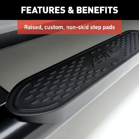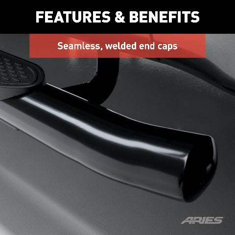 When you start and end your day turning the ignition of your truck, unreliable footing just is not an option. You need a step that can bear weight with ease, provide comfortable footing and look good doing it. ARIES 4" oval side bars are sleek, strong and custom-fitted to be a highly functional extension of your truck. ARIES 4" oval side bars are made with strong 4" elliptical tubing and are available in two different finish options to allow for full customization: polished stainless steel and black powder coat carbon steel. This set of side bars is constructed from high-strength carbon steel for a solid step, and they feature a dual-layer E-coat and semi-gloss black powder coat finish for excellent protection against scratching, chipping and peeling. Something that sets the ARIES 4" oval side bar apart from all others is its blended end caps and OE-style bends. Rather than capping our side bars with a plastic cap, we offer a blended end cap for a smooth, finished appearance. We also equip the ends with a special 20-degree bend and original equipment styling to perfectly contour to your vehicle. ARIES 4" oval side bars are fitted with raised step pads to provide a wide stepping surface. The polypropylene construction will not crack over time, and because it has a textured grip, the surface is highly resistant to slips and skids, even when wet. Installation of ARIES 4" oval side bars is quick and easy with custom-fitted mounting brackets and no drilling necessary. These nerf bars fit select model years of the Chevrolet Silverado and GMC Sierra 1500, 2500 HD or 3500 HD crew cab (see application info to verify fitment).