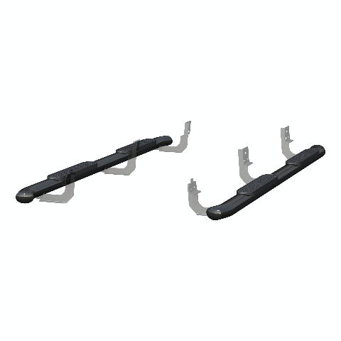 When you start and end your day turning the ignition of your truck, unreliable footing just is not an option. You need a step that can bear weight with ease, provide comfortable footing and look good doing it. ARIES 4" oval side bars are sleek, strong and custom-fitted to be a highly functional extension of your truck. ARIES 4" oval side bars are made with strong 4" elliptical tubing and are available in two different finish options to allow for full customization: polished stainless steel and black powder coat carbon steel. This set of side bars is constructed from high-strength carbon steel for a solid step, and they feature a dual-layer E-coat and semi-gloss black powder coat finish for excellent protection against scratching, chipping and peeling. Something that sets the ARIES 4" oval side bar apart from all others is its blended end caps and OE-style bends. Rather than capping our side bars with a plastic cap, we offer a blended end cap for a smooth, finished appearance. We also equip the ends with a special 20-degree bend and original equipment styling to perfectly contour to your vehicle. ARIES 4" oval side bars are fitted with raised step pads to provide a wide stepping surface. The polypropylene construction will not crack over time, and because it has a textured grip, the surface is highly resistant to slips and skids, even when wet. Installation of ARIES 4" oval side bars is quick and easy with custom-fitted mounting brackets and no drilling necessary. These nerf bars fit select model years of the Ram 1500, 1500 Classic, 2500 or 3500 and Dodge Ram 1500, Ram 2500 or Ram 3500 (see application info to verify fitment).