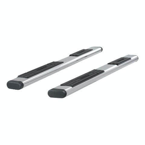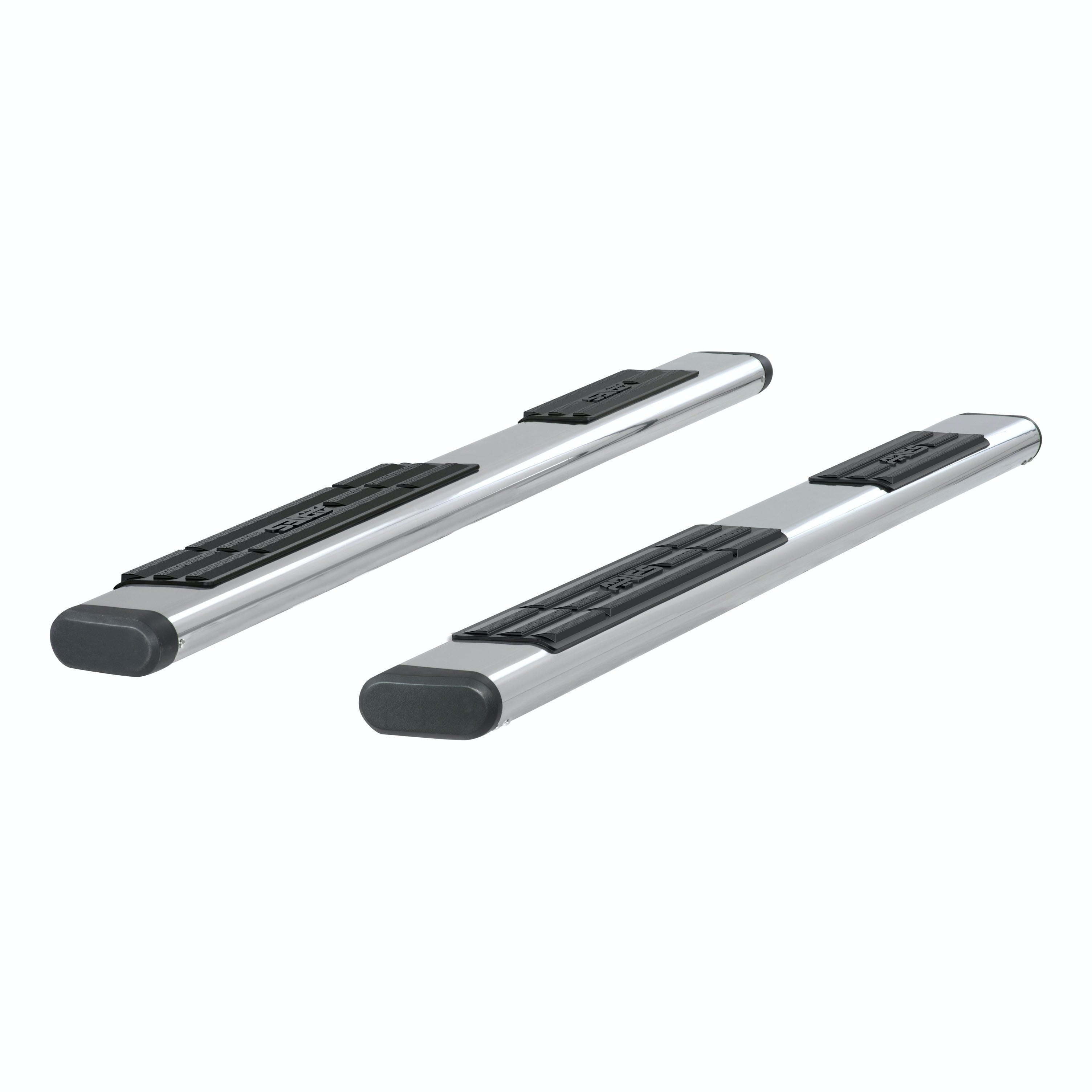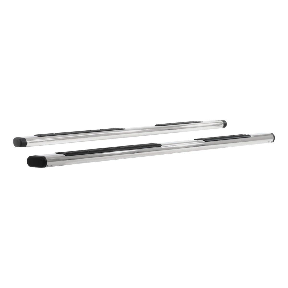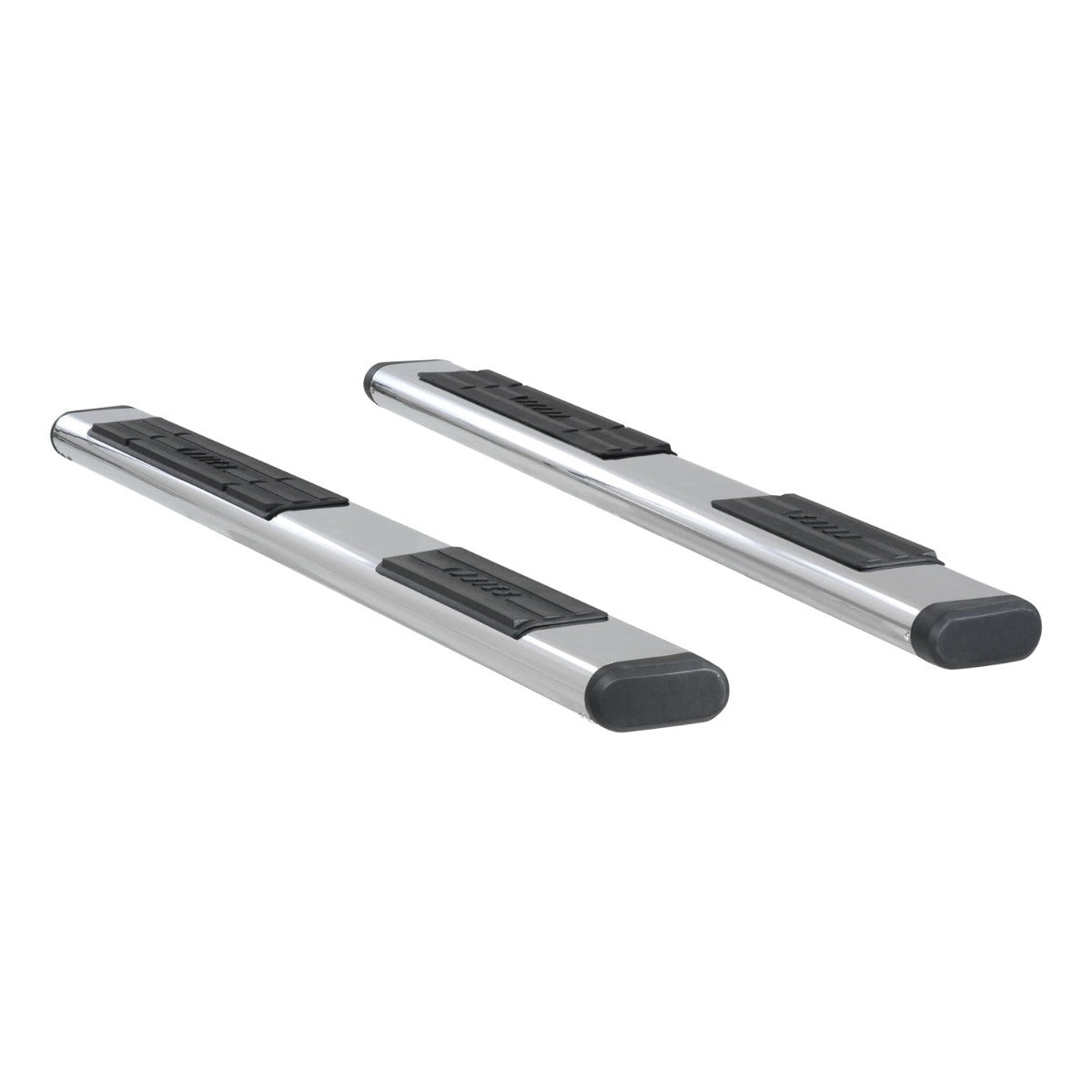 For solid footing, a comfortable step and a bold look for your truck, ARIES 6" oval side bars are a step up. They are designed to mimic the style popular original equipment side bars and running boards, featuring two professional finish options, large non-skid step pads and tapered end caps. This particular pair of 6" ovals is made with 304 stainless steel, meaning they are high in nickel content to be truly resistant to rust and corrosion. For a lasting shine and a bright accent on your vehicle, they are given a highly polished, mirror-like finish. They are also available in semi-gloss black powder-coated aluminum. To protect the interior of the tubes, all 6" oval sides are equipped with hard ABS plastic end caps. The end caps come pre-attached to the tubes and feature a tapered design, lending to the overall OE look of the side bars and providing a professional finishing touch on your truck or SUV. For a sure step every time you climb into your vehicle, ARIES 6" ovals are equipped with extra-wide step pads. The step pads are made from tough polypropylene and provide a generous 5" width. The large, flat surface offers comfortable footing and has a textured surface to prevent slipping, even when wet. The polypropylene construction makes the step pads durable and crack-resistant for long-lasting use. ARIES 6" oval side bars are also made for easy, no-drill installation. The boards themselves feature a track system for versatile application, and they mount using vehicle-specific brackets for a custom fit. The mounting brackets are made from high-strength carbon steel and use pre-existing holes to eliminate drilling during the installation process (NOTE: Mounting brackets for these side bars are sold separately. See the application information to find which brackets and side bars fit your vehicle).