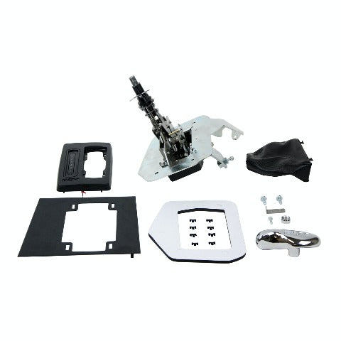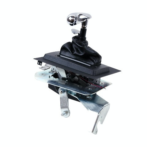 The Hammer console shifter is a direct-fit for all 1987-93 Mustangs. This just may be the most comfortable and versatile shifter available for your Pony. The unique design of the shift handle easily fits all sizes of hands providing the appropriate wrist angle and feel when shifting. The multi-position lockout trigger is spoon-shaped for easy operation in a multitude of grip positions and controls the reverse lockout feature, meeting NHRA/IHRA safety rules. It features a smooth positive ratchet action, which only allows you to shift one gear at a time, so you'll never have to worry about missing a gear from over-shifting. Other safety features include a backup light switch, neutral safety switch and illuminated gear position indicator. The result is a shifter that is perfect for all new generation vehicles and street rods where style is not just form, but function. Shifter includes all necessary hardware, console plate, boot, shift handle and detailed instructions for an easy at home installation. Note: Fits C4 and AOD transmissions in 1987-93 Mustang consoles. Shifter re-uses the factory shift cable. Use with a C4 transmission requires optional installation kit #81020