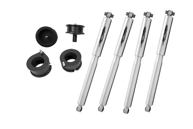 Belltech's leveling kits offer both front struts and rear shocks as well as front spacers to give a complete solution to lift your truck and replace worn oem dampers to restore ride quality and performance.