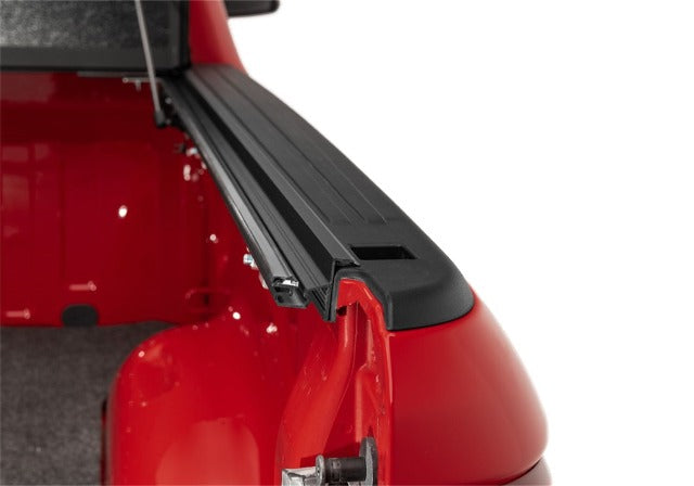 Introducing Extang's Xceed -- a seamless and secure hard folding truck bed cover designed and engineered to greater expectations. This flush mounted, hard-folding cover offers full bed access when open, and adds a seamless and polished look to your truck when closed. Xceed was precisely Extang Engineered to provide excellent coverage while ensuring maximum security and ultimate style. Go completely sleek without minimizing the durability of your truck bed cover. Flush mounted to provide an extreme low profile appearance and engineered to complement your truck's functionality and looks. Xceed's matte black finishes are the final touches to enhance the overall appearance of your truck. Xceed also goes double duty on superior security. The EnduraCoat moisture-proof vinyl covering is dedicated to protecting your cargo from earth's elements and the Secure Rotary Release knob hides the operation cable to add an extra step of protection. Together, you can rest assured that your cargo is entirely secured. Stowing large cargo just got easier. Xceed folds all the way up to the back window, allowing complete, full bed access with a unique four-panel construction to reduce the overall height when open.