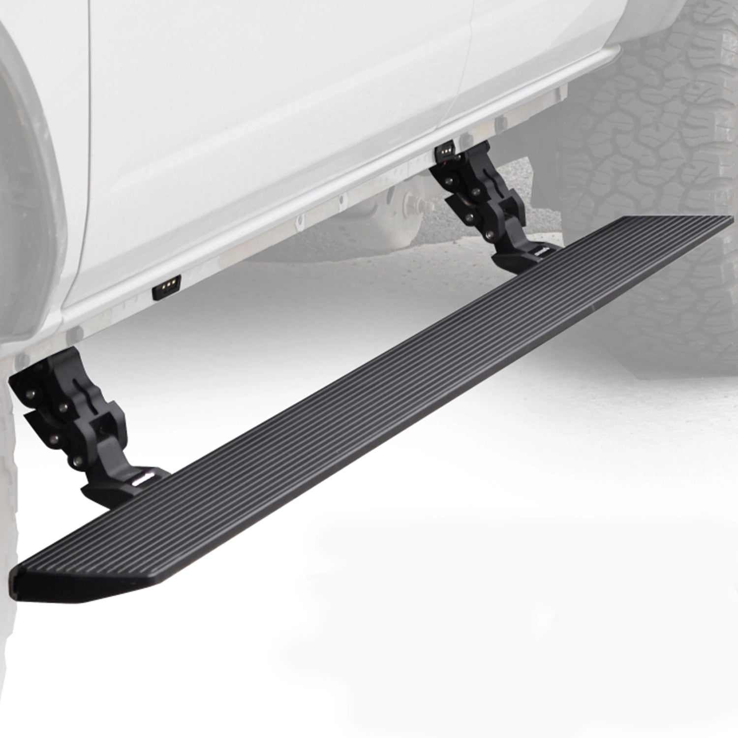If you’re looking for running boards that are top of the line, check out Go Rhino E-Board E1 Electric Running Boards. They have a six-inch-wide stepping area that is anti-slip so you don’t have to worry about slipping. These power steps are extremely durable and constructed out of aluminum and you can choose between textured power finish or protective bedliner coating. The dual motor make them work great in extreme climates. The magnetically activated design more for an easier installation that leave the OBD port free for other accessories.  Integrated LED lights illuminate when the running boards drop down and deploy for great visibility for the stepping area.