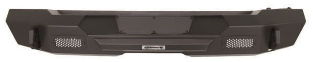 Trailline Rear One Piece Stubby Bumper for Jeep Wrangler JL models. Features a mass clearance end cap design for use with larger tires and lifted vehicles. Signature Rhino hook patented shackle mounts included. Black Powdercoat Finish.