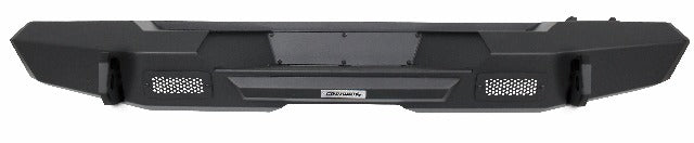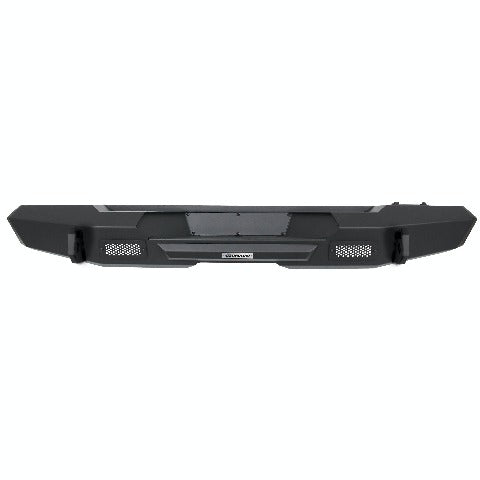 Trailline Rear One Piece Straight Bumper for Jeep Wrangler JK models. Features a midwidth end cap design for use with large tires and lifted vehicles. Signature Rhino hook patented shackle mounts included. Black Powdercoat Finish.