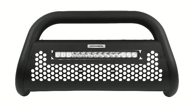 Go Rhino RC2 LR Bull Bars offer updated styling and features that combine easy ways to add todays popular LED lights with front-end protection. Our textured black powder coat finish and Go Rhino hex pattern skid platte enhance vehicle styling with integra