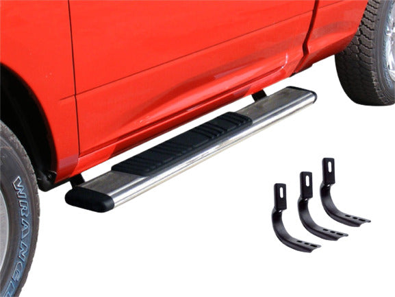 5" OE Xtreme Low Profile Side Steps + Brackets - 52" Long - Polished Stainless Steel - Low profile design, adds functionality and style to your vehicle. Available in lengths for regular, extended and crew cab applications. Also available for most SUV, CUV
