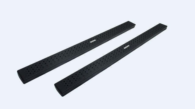 HD OE Xtreme Side Steps + Brackets, welded steel construction and extreme traction step area. Open channel design to allow for water to drain. 1 Pair, Black Powdercoat finish. 3 Year warranty