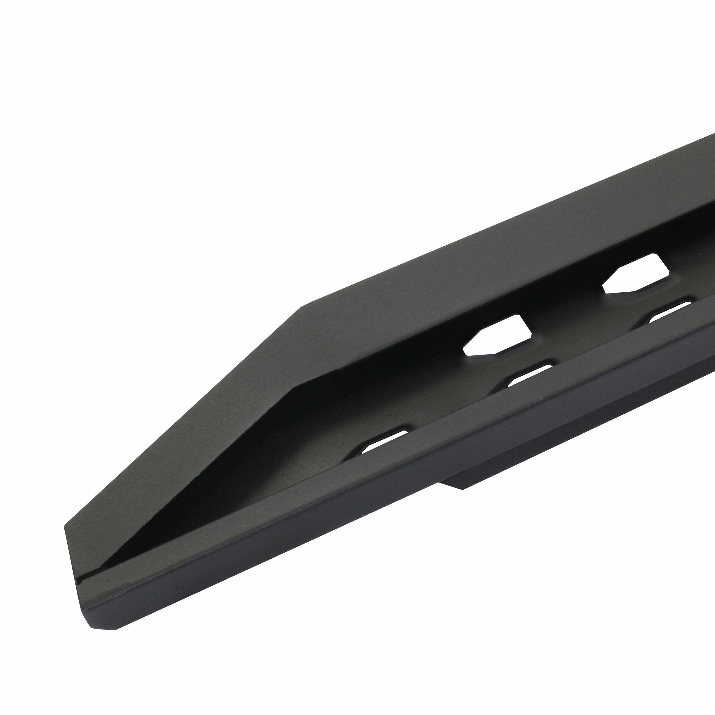 RB20 Slim Boards;RB20 Slim Line Running Boards w Brackets;rb 20, RB 20, RB-20, Running board, running boards, nerf, Nerf bar, Nerf bars, nerf step, nerf steps, side bar, sidestep, side step, Side Steps, slider, side rail, side tails, side step rail, sides, drop step, drop steps, truck step, truck steps,;RB20 Slim Line Running Boards with Mounting Brackets Kit;RB20 Slim Line Running Boards offer a rugged, full length step. The Raptor-inspired design is available with protective bedliner coating or textured black powder coat finish. Mounting brackets included.;The RB20 Slim Line Running Boards offer the same heavy duty toughness as the original RB Series, but with a slimmer design that fits tighter along the cab for increased ground clearance when off-roading. Constructed from 16-gauge zinc-coated galvanized steel, the Raptor-inspired boards were built to protect your panels from flying debris while providing a full-length step platform. The modern, bullet-stamped design is 5 1/2 inches across at its widest point (compared with 7 1/2 inches of the original RB20) and are offered in cab-length sizes that fit most popular trucks, Jeeps and SUVs. RB20 Slims Boards come with a Limited Lifetime warranty on materials and construction and a 5 year warranty on the Textured Black Finish.;16-gauge zinc-coated galvanized steel with durable finish for corrosion, impact and abrasion resistance;Complete kit includes boards and mounting brackets;Easy, no-drill installation;Heavy duty, Raptor-inspired running boards with slim, low profile design;Modern bullet-stamped board that is 5 1/2”across at its widest point and tapers down towards the rear;Slim design provides increased ground clearance;Limited Lifetime warranty on materials and construction and a 5 year warranty on the Textured Black Finish.