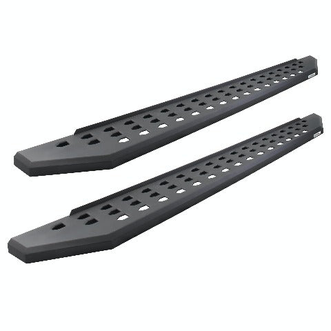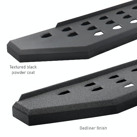 RB20 Running Boards offer off road styling while also helping to protect vehicle finish and providing a wide full-length step platform for easy entry to vehicle. Bolt-on Drop Steps enhance access to vehicle, Black Textured Powdercoat