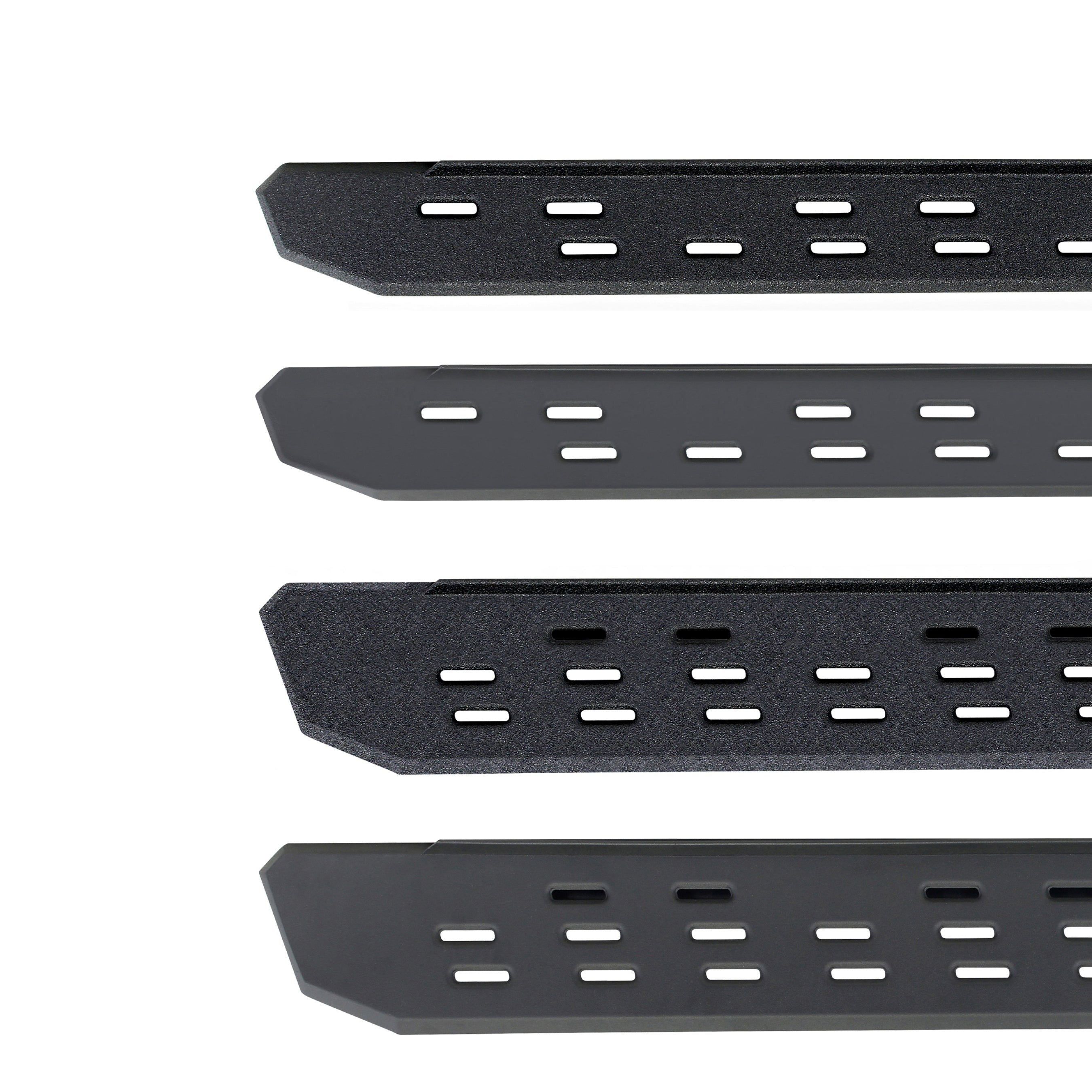 RB30 Running Boards;RB30 Running Boards with Drop Steps Kit;rb 30, RB 30, RB-30, Running board, running boards, nerf, Nerf bar, Nerf bars, nerf step, nerf steps, side bar, sidestep, side step, Side Steps, slider, side rail, side tails, side step rail, sides, drop step, drop steps, truck step, truck steps,;RB30 Running Boards with Mounting Brackets, 2 Pairs Drop Steps Kit;2019-2023 Ford Ranger (Doors: 4 & Body: Crew Cab Pickup);RB30 Running Boards offer off road styling while also helping to protect vehicle finish and providing a wide full-length step platform for easy entry to vehicle. Bolt-on Drop Steps enhance access to vehicle, Black Textured Powdercoat;Meet the third edition of the legendary Go Rhino RB Series of running boards: the RB30. The RB30 is the next generation of Raptor-inspired design that will make your truck, Jeep, Bronco or SUV stand out from the crowd. With its aggressive, stylish appearance, this cab-length, bolt-on side step provides maximum traction and features an open flow-through design that prevents mud, ice, and snow from accumulating. The corrosion-resistant 16-gauge steel step mounts tightly to factory mounting points along the lower rocker panel, providing plenty of clearance for off-roading, and it’s strong enough to support 300 lbs. per stepping surface for 600 lbs. per board. Matching drop steps will make entering and exiting lifted vehicles even easier. The RB30 Running Board is 7” wide for most its length before it tapers (compared to 5” wide for the Slim Line version). All RB Series Running Boards are available in Textured Black Powder Coat or Protective Bedliner finish, made in North America and offer a limited lifetime warranty against manufacturer and material defects, with a 5-year warranty on the finish.;16-gauge zinc-coated galvanized steel with durable finish for corrosion, impact and abrasion resistance;Complete kit with boards, mounting brackets and 4 drop steps;Heavy duty, Raptor-inspired running board design;7” wide for most its length before it tapers;Limited Lifetime warranty on materials and construction and a 5 year warranty on the Textured Black Finish.