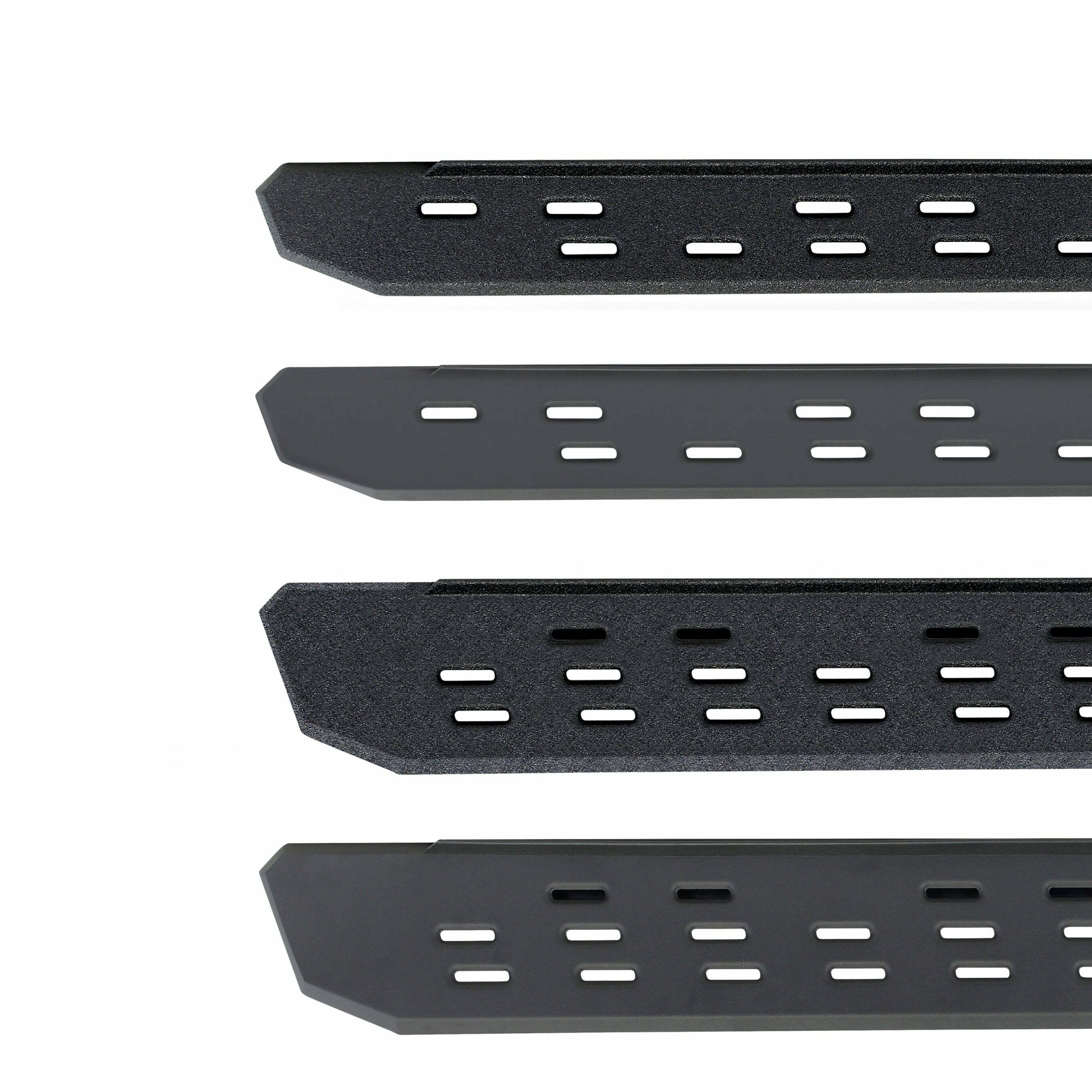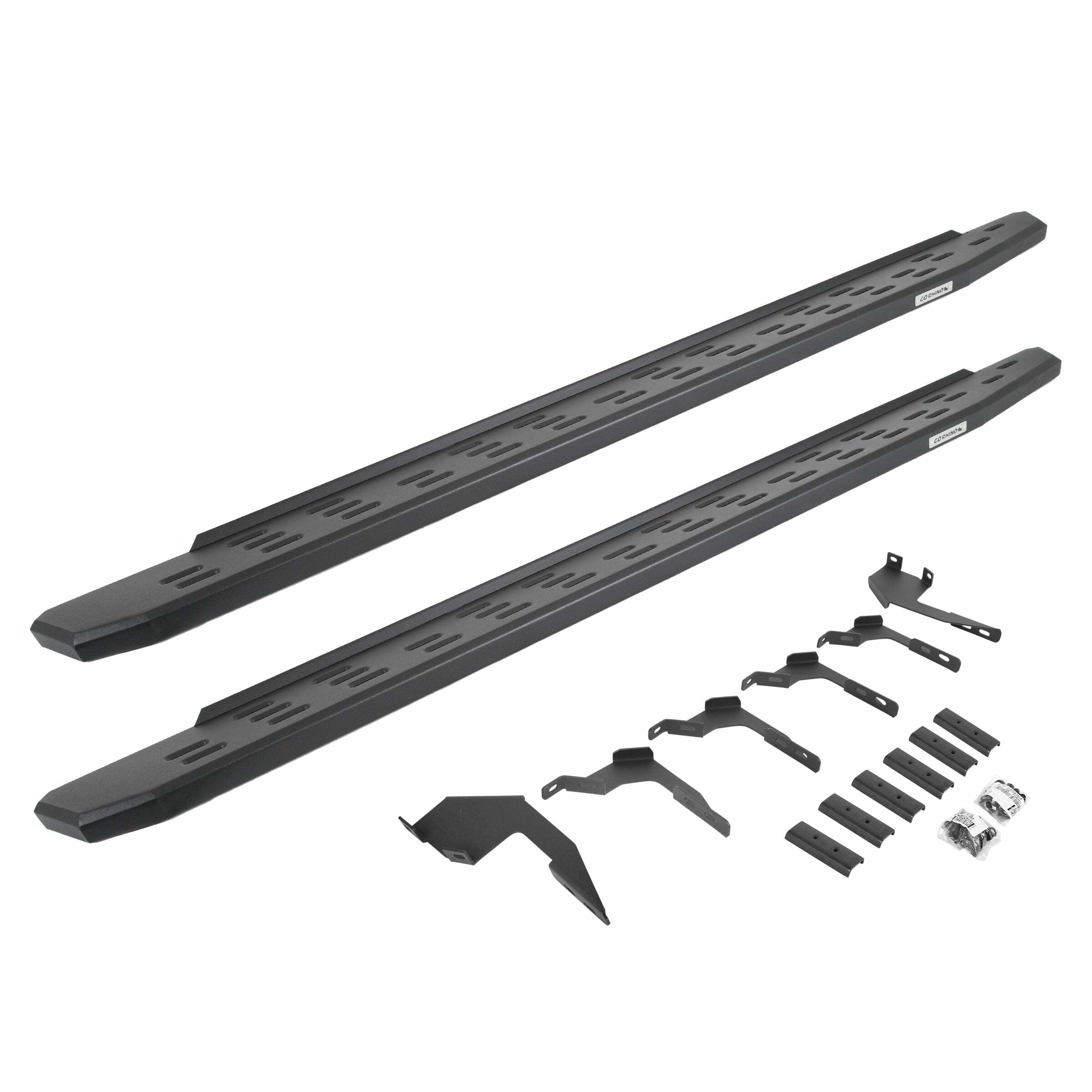 RB30 Running Boards;RB30 Running Boards with Bracket Kit;rb 30, RB 30, RB-30, Running board, running boards, nerf, Nerf bar, Nerf bars, nerf step, nerf steps, side bar, sidestep, side step, Side Steps, slider, side rail, side tails, side step rail, sides, drop step, drop steps, truck step, truck steps,;RB30 Running Boards with Mounting Bracket Kit;2019-2023 Ford Ranger (Doors: 4 & Body: Crew Cab Pickup);RB30 Running Boards offer off road styling while also helping to protect vehicle finish while providing a wide, full-length step platform for easy entry to vehicle. Built from 16-gauge zinc coated steel and coated for corrosion resistance.;Meet the third edition of the legendary Go Rhino RB Series of running boards: the RB30. The RB30 is the next generation of Raptor-inspired design that will make your truck, Jeep, Bronco or SUV stand out from the crowd. With its aggressive, stylish appearance, this cab-length, bolt-on side step provides maximum traction and features an open flow-through design that prevents mud, ice, and snow from accumulating. The corrosion-resistant 16-gauge steel step mounts tightly to factory mounting points along the lower rocker panel, providing plenty of clearance for off-roading, and it’s strong enough to support 300 lbs. per stepping surface for 600 lbs. per board. The RB30 Running Board is 7” wide for most its length before it tapers (compared to 5” wide for the Slim Line version). All RB Series Running Boards are available in Textured Black Powder Coat or Protective Bedliner finish, made in North America and offer a limited lifetime warranty against manufacturer and material defects, with a 5-year warranty on the finish.;16-gauge zinc-coated galvanized steel with durable finish for corrosion, impact and abrasion resistance;Complete kit with bars and mounting brackets;Heavy duty, Raptor-inspired running board design;7” wide for most its length before it tapers;Optional drop down steps also available (sold separately);Limited Lifetime warranty on materials and construction and a 5 year warranty on the Textured Black Finish.