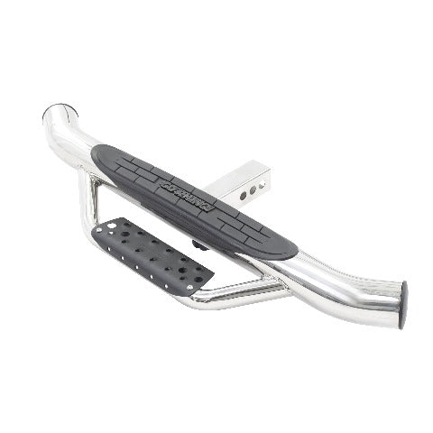 This hitch step has the same great aggressive styling of our popular Dominator Side Steps with a Dual-Step design and foot pads that provide sure footing. Please note some hitch steps may interfere with rear facing exhaust systems.