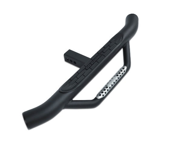 This hitch step has the same great aggressive styling of our popular Dominator side steps with a dual step design and foot pads that provide sure footing. Please note some hitch steps may interfere with rear facing exhaust systems.