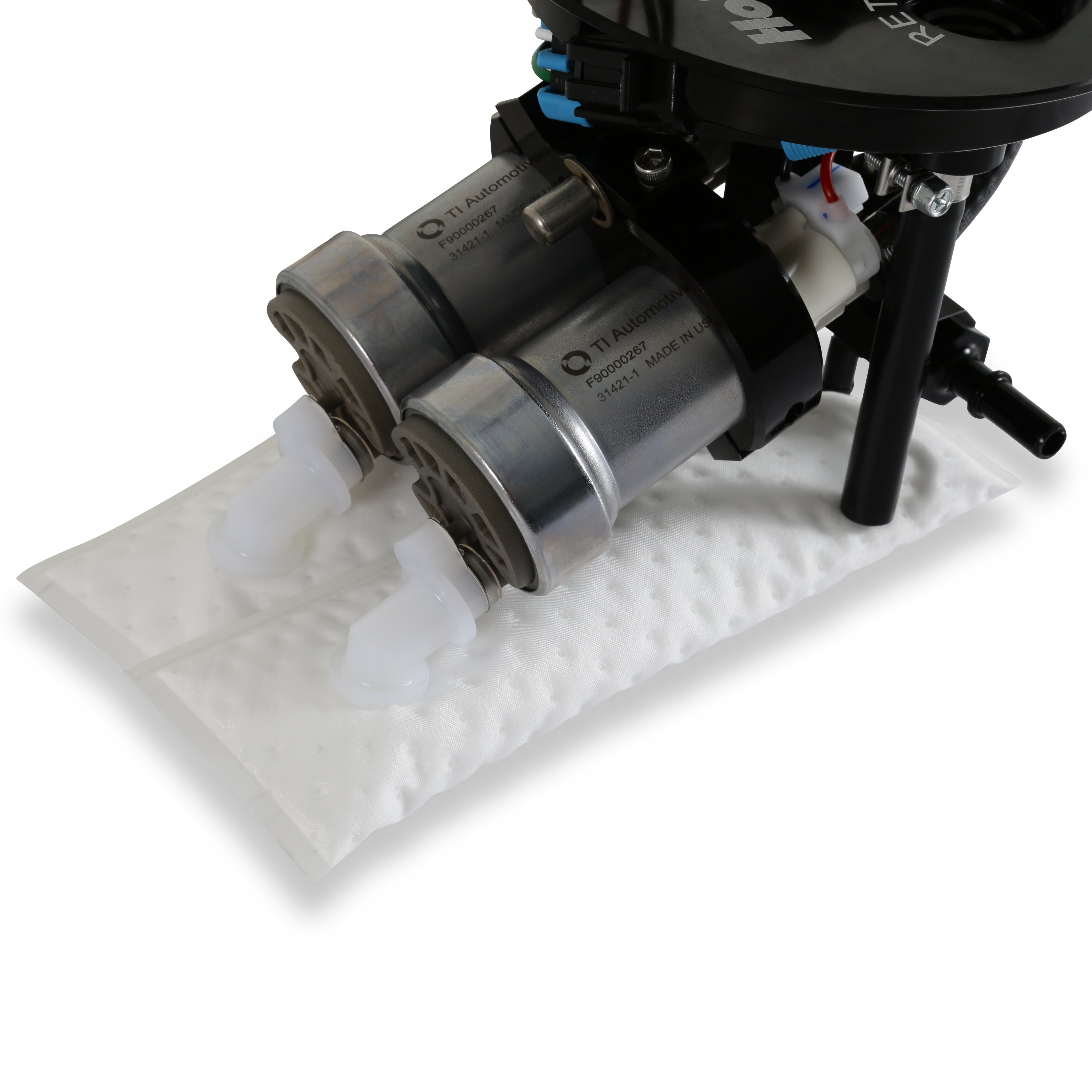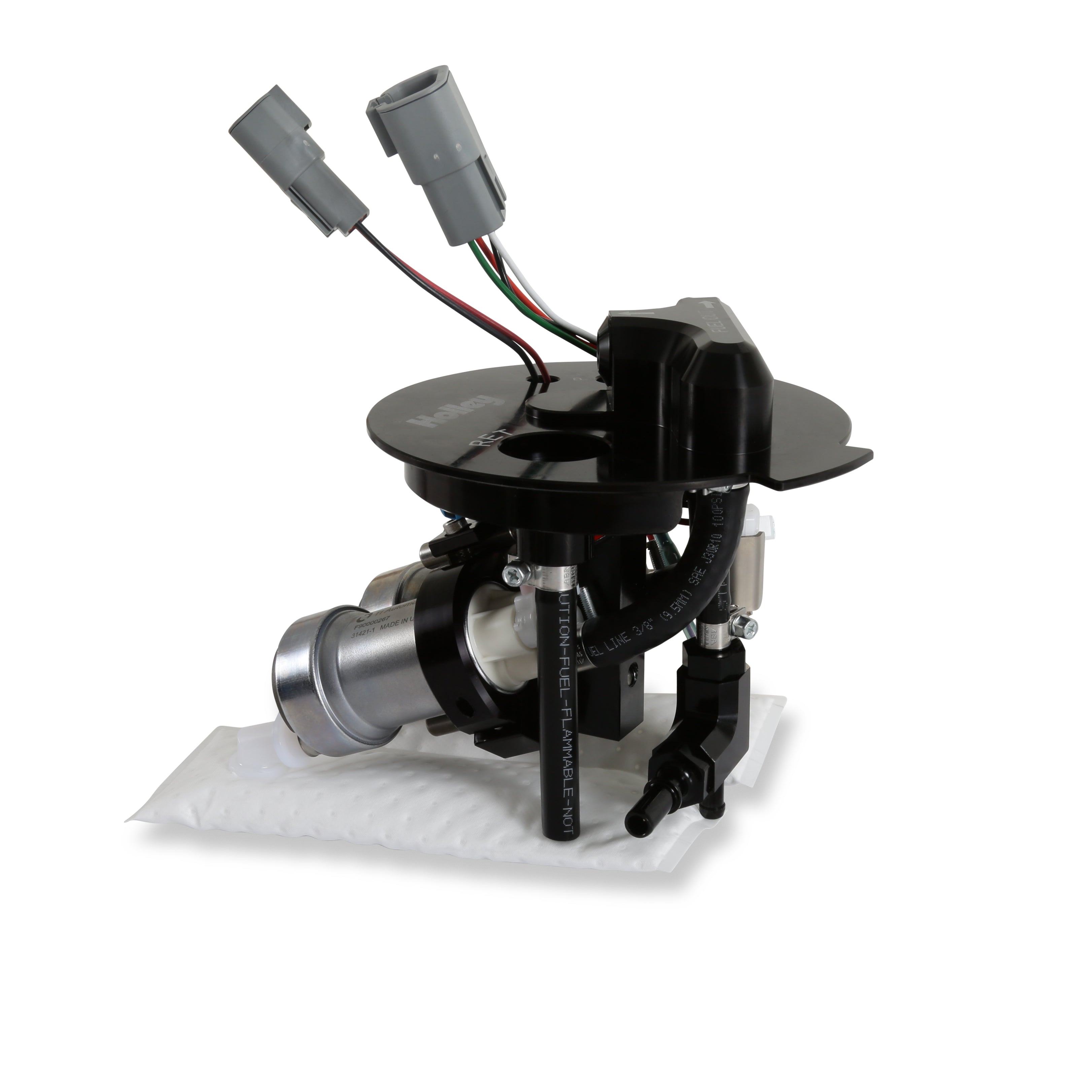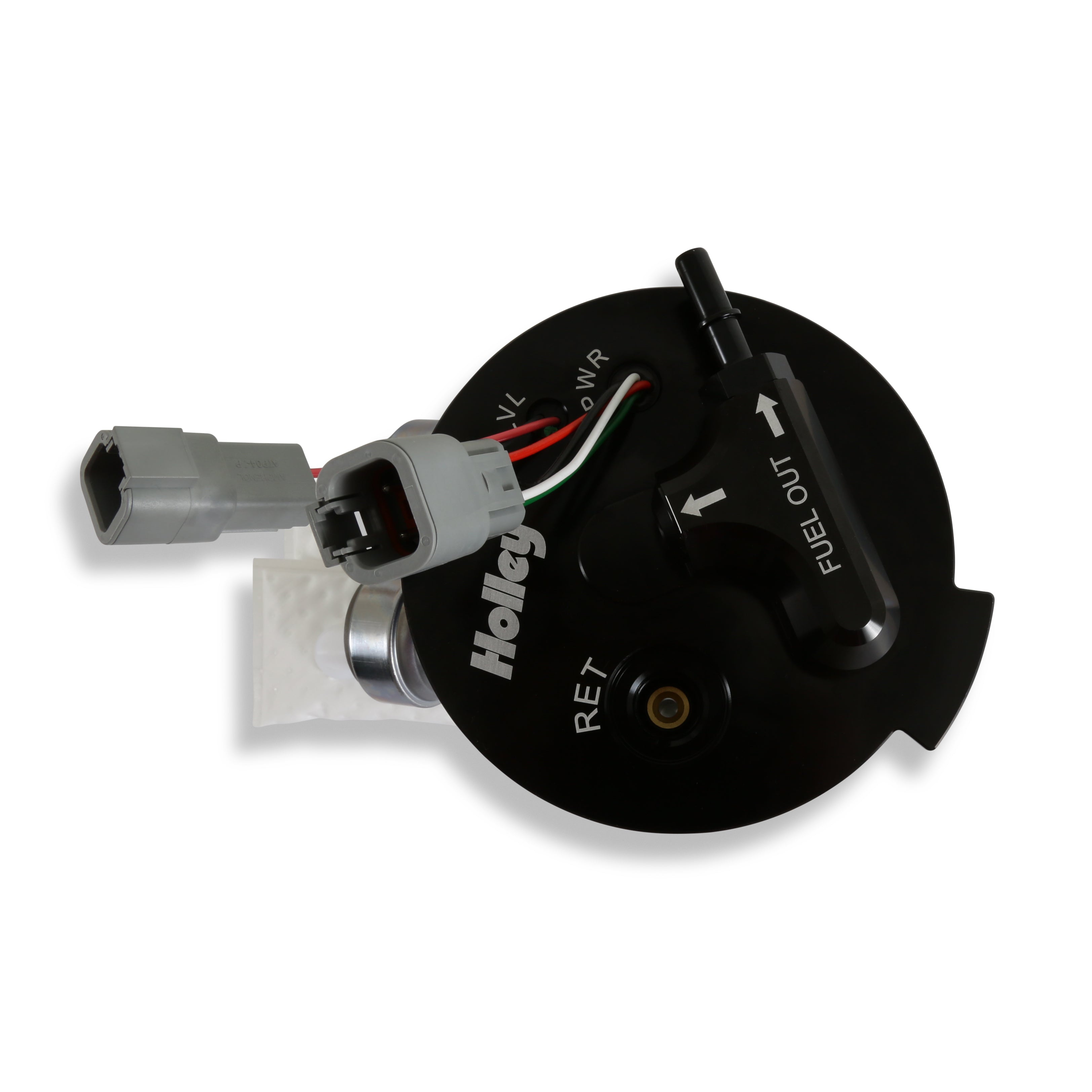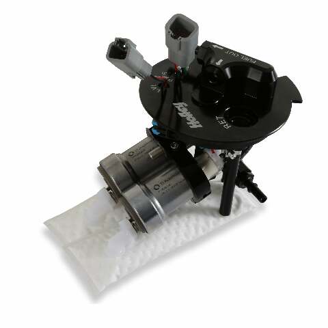 5TH GEN CAMARO TWIN 450 MODULE;HOLLEY DUAL 450 LPH PUMP MODULE SYSTEM;2010-2015 Camaro Dual 450 LPH Pump Module;If you are adding nitrous or boost to your 2010-2015 Camaro race car, Holley has the fuel pump upgrades for you! The fuel pump module design starts with a billet pump flange assembly and connects it to dual 340 or 450 LPH fuel pumps for maximum fuel delivery of gasoline or E85. The fuel pump module design starts with a billet pump flange assembly and connects it to dual 340 or 450 LPH fuel pumps for maximum fuel delivery. The module also includes two HydraMats to eliminate fuel starvation under hard acceleration or cornering. The Integrated Jet pump assembly allows retention of factory drivers side fuel pickup. A new level sensor is included and pre-installed. Installation is as simple as removing factory module and replacing with Holley module. Outlet fitting included to connect to factory feed line. Secondary ORB port machined into flange for easy AN plumbing of feed line if you so desire. The module is a return style only so a regulator such as the 12-895 will be needed to complete the return portion of your system. The dual 340 LPH module will support up to 1400 HP while the dual 450 LPH will support up to 1750 HP.;-8AN ORB inlets and outlets (return fitting included);Dual 450 (1750 hp) @ 60 psi at 13.5 volts / 16.9 amp draw;Two HydraMats, one for each pump;Integrated jet pump assembly allows retention of factory drivers side fuel pickup;Have been tested to deliver stable fuel pressure down to low fuel indicator warning light;Brand new level sensor included and pre-installed. Installation is as simple as removing factory module and replacing with Holley module;Outlet fitting included to connect to factory feed line. Secondary ORB port machined into flange for easy AN plumbing of feed line;Module is return style only so a regulator must be installed;Machined, billet, anodized, laser etch components for durability and good looks