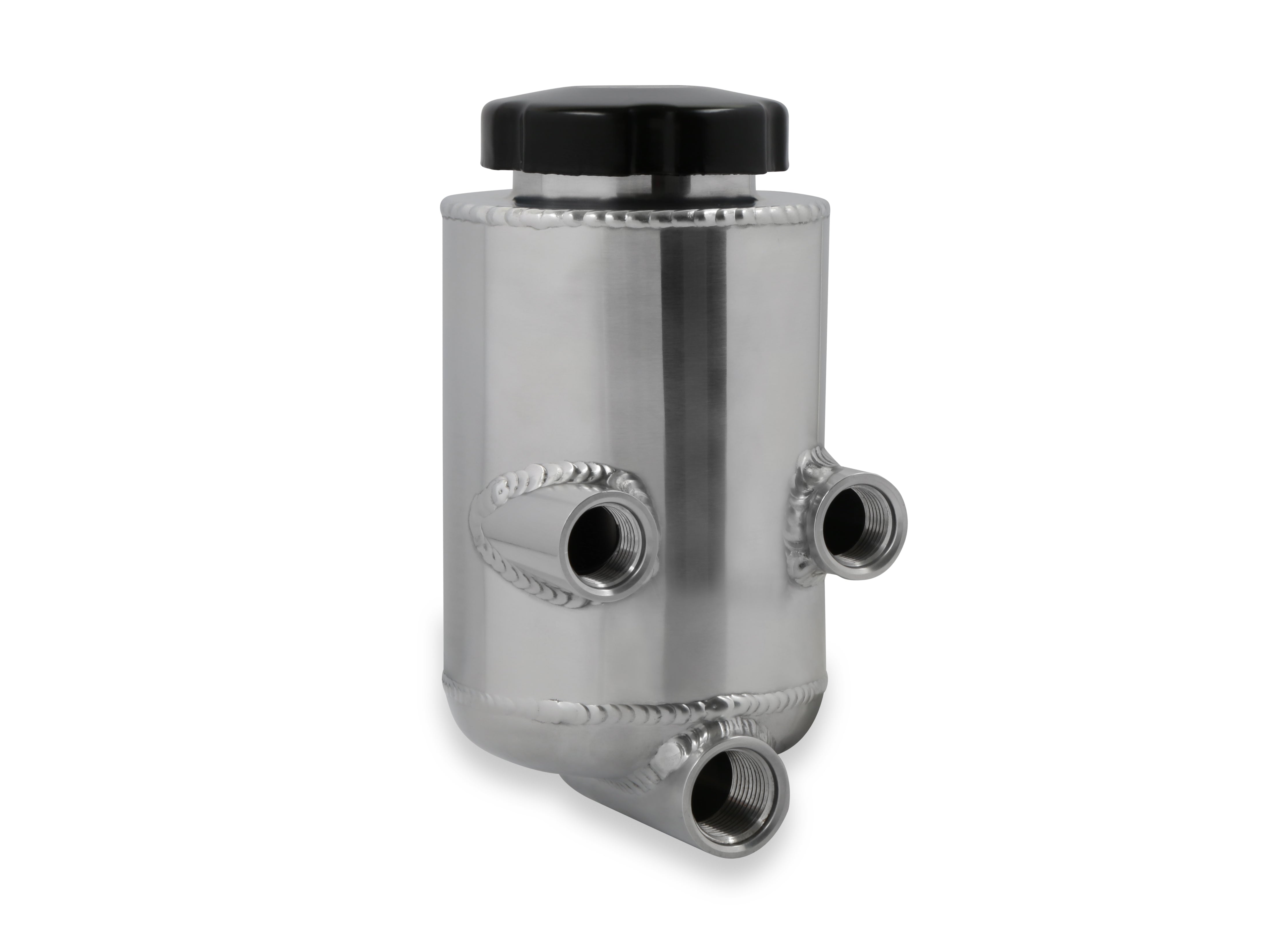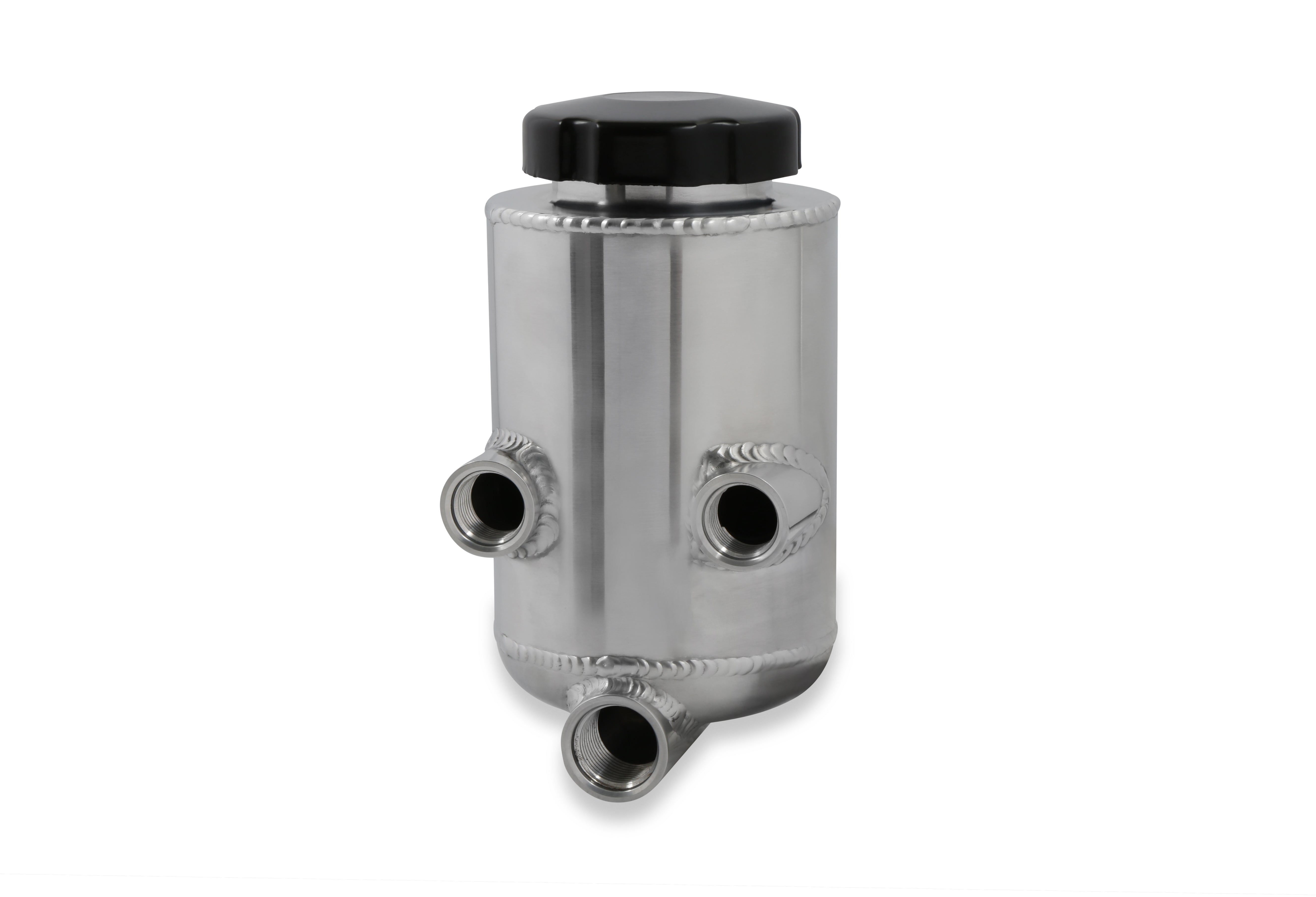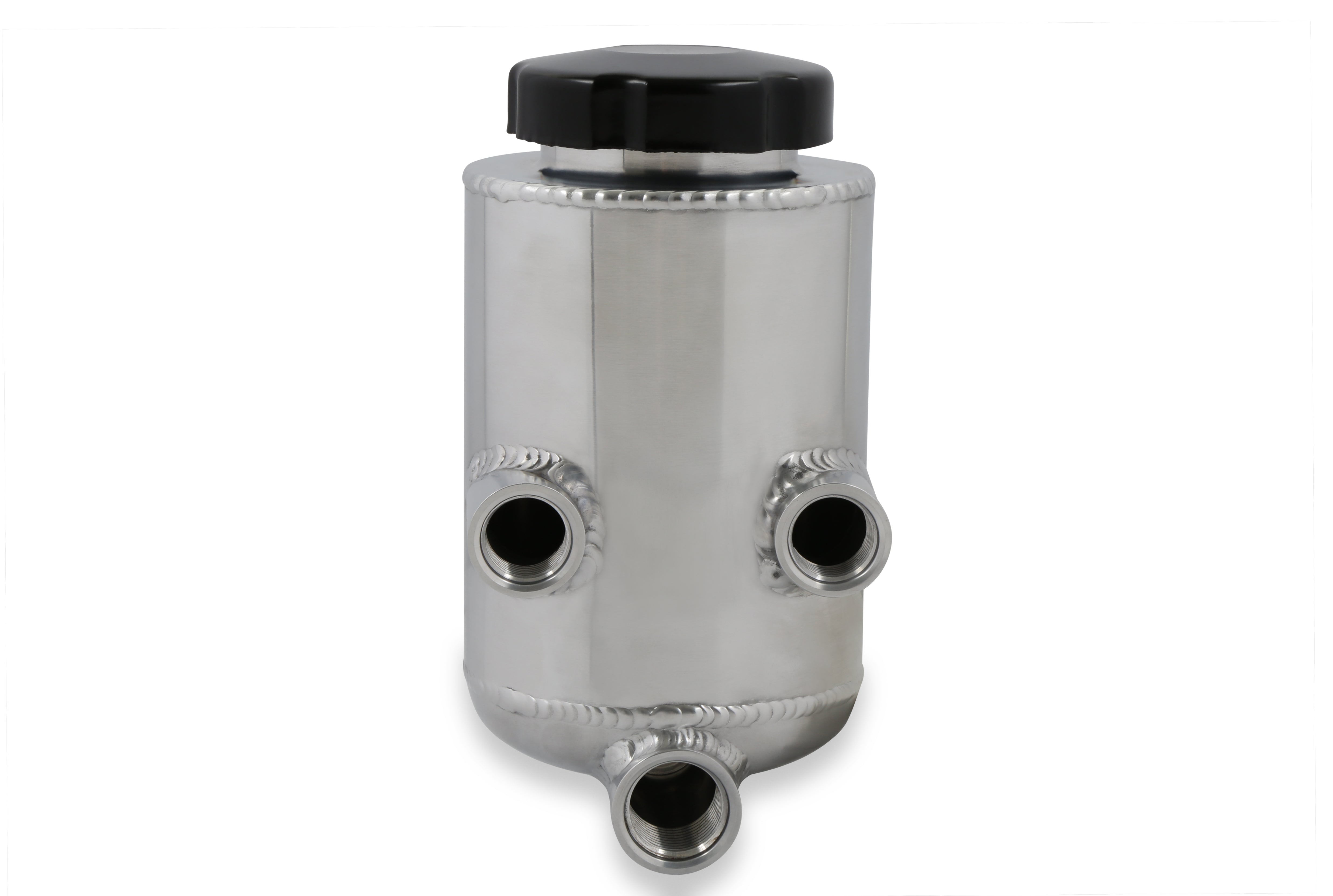 P/S RESERVOIR,POLISH,W/ADAPTRS,NO BRKTS;Holley's Power Steering hose and hose ends are recommended for the Power Steering (high pressure) plumbing. The low pressure feed hose that feeds fluid from the bottom of the reservoir to the power steering pump must be compatible with power steering fluid (I.e. UltraPro, Ultra-Flex, or Speed-Flex hose & hose ends are recommended;Holley Power Steering Remote Reservoir - Polished Aluminum;Universal - Polished Aluminum for Custom & Racing Applications;Holley's remote mounted power steering reservoirs are ideal for applications that can not fit a pump mounted reservoir. These lightweight aluminum reservoirs have an internal baffle and air separator to keep the fluid from getting foamy or overflowing. Choose from two styles of reservoirs - Use 198-211 (polished aluminum finish) for custom & racing applications (fabricate mount or use clamps for mounting), or 198-212 has a black finish, and includes mounting bracket. Reservoirs include AN fittings. The dual inlet ports support the plumbing required for Hydro-Boost brake systems. The factory style plastic pump-mounted power steering reservoir does not have the extra inlet port that is required for Hydro-Boost. These remote reservoirs when used with Earls power steering pump adapters (PS0001ERL, PS0002ERL, PS003ERL, PS0004ERL) eliminate the plastic reservoir & allow easy plumbing for the outlet from the Hydro-Boost to the reservoir. If you don't have a Hydro-boost brake system, install the included AN plug on the extra inlet port.;Aluminum Construction;Dual inlet Ports Support Hydro-Boost Brake Systems - Plumbing Solution with this Style Brakes when Used with Earls Pump Adapters;Fluid Baffle with Air Separator Built Inside Reservoir - Reduces Foaming and Bubbles in Power Steering Fluid for Improved Steering Performance;Port Sizes: (2) -8 ORB Ports on Top (Inlets) & (1) -10 ORB Port on the Bottom (Outlet);Includes Fittings: (2) -6 AN Male Flare to -8 AN ORB, (1) -10 AN Male Flare to -10 AN ORB, and (1) -8 AN Port Plug;Vented Cap - Allows Excess Pressure to be Released;Universal Design - Fabricate Bracket or Use Clamps for Mounting;Dimensions: Height 6.22", Width 3.63 - See Drawing