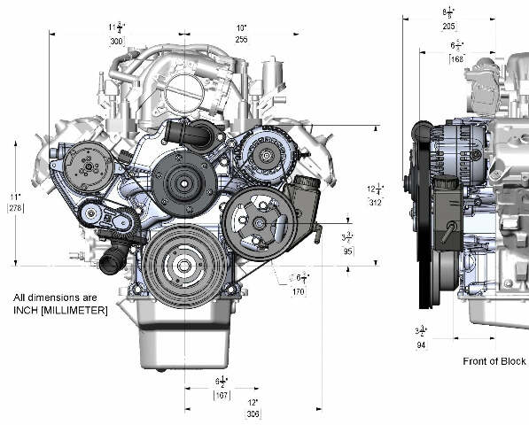 COMP MID-MT PREM ACC SYS, HEMI NO-VVT-BL;Hemi Drive; hemi drive; hemi accessory drive; gen III hemi drive;Holley Premium Black Mid-Mount Complete Accessory System;Gen III Hemi Engine - Non VVT - Fits 2003-2008 5.7L & 2005-2010 6.1L Engines - Black Finish - SFI Certified Damper with Billet Aluminum Pulley;Holley's complete, mid-mount accessory system has all accessories pulled in tighter than other accessory drives. At the heart of the system is a "bracketless" design (patent pending), where the accessories bolt directly to the timing cover for a clean, integrated system. The design offers superb engine visibility to show off your horsepower, not your accessories. Among the many swap friendly features are two optional heater connection configurations. The innovative Holley premium alternator incorporates 6-phase and square wire technology. The compact and reliable SD7 A/C compressor and Type II P/S pump with baffled reservoir are also integrated. The kit utilizes Holley's proven cartridge style water pump. When we say "complete", we mean complete. The Mid-Mount system comes with everything you need. All accessories are included; the water pump, A/C compressor, Alternator, P/S pump with reservoir, and the crank damper. All pulleys and the belt are supplied. Even heater hose adapters, power steering to -6 AN hardline, and the alternator plug/harness are included. Easy assembly was a priority during the entire development of this accessory solution. Color graphical instructions walk you through every step of the ultra-easy installation. This accessory drive system fits following VVT Engines: 2009-Up 5.7L 2011-UP 6.4L;Bracketless Accessory Mounting System for Ultra-Easy Assembly – Timing Cover is Integrated into this Bracket / Casting;Configurable Heater Hose Connection Options - for Hose Routing Flexibility;Holley Premium 150 Amp alternator – Plenty of Power for All Vehicle Systems;Easy Wiring of Alternator That Doesn’t Require Factory ECU to Excite Alternator;Alternator is Tucked in Tight to the Engine – Eliminates Frame Rail or Hood Clearance Issues (Common with Factory Car or Truck Drive Systems);Holley Water Pump w/ Cartridge Design – Compact & Easy to Service Without Removing the Water Pump Housing / Timing Cover;SD7 A/C Compressor – Small Compact Compressor;Type II Power Steering Pump with Baffled Reservoir;Power Steering Pump Has Proper Pressure for use with Steering Box on Older Vehicles (Eliminates Steering Box Damage Due to Excessive Pressure);Swivel Water Inlet & Outlet – Allows Custom Radiator Hose Routing;OE (Original Equipment) Pulley Ratios for Optimal Accessory Performance;No Adapters or Spacers Needed – for Easy Installation;Works with Common After-Market and Factory Throttle Bodies and Intakes;Choose from Kits in Natural Aluminum or Black Finish – Fits Naturally Aspirated Gen III Hemi Engines (5.7L, 6.1L, and 6.4L);Includes OE Style Damper with Cast in Serpentine Pulley;All Accessories are Included; Water Pump, A/C Compressor, Alternator, Power Steering Pump w/ Reservoir, Pulleys & Crank Damper;All Plumbing Adapters, Wiring Adapters, Gaskets and Seals are Included;Available for VVT (Variable Valve Timing – 2009-Up 5.7L and 2011-Up 6.4L) and Non-VVT (2003-2008 5.7L, and 2005-2010 6.1L) Engines in Natural Cast Aluminum or Black Finish