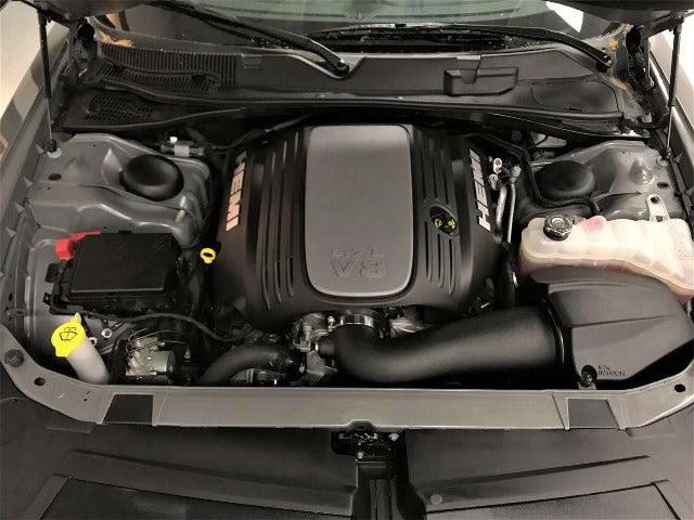 Holley's iNTECH cold air intake brand represents the highest degree of technology, performance and style for late model cars, trucks and SUV's. This system is designed for the popular 2011-2020 Dodge Challenger and Charger, as well as the 2011-2019 Chrysler 300 with the 5.7L HEMI V8. The intake made an additional 17 hp and 26 lbs.ft. torque on the dyno with a very broad power curve. All iNTECH sealed intakes feature a unique patented Slip-Seal housing-filter-tube interface that eliminates the use of hose clamps and adapters for a seamless installation. The large, high flow, washable and reusable 4-layer dry air filter eliminates the use of filter oils that may damage MAF sensors and set off check engine lights due to over oiling. The use of factory mounting locations and emissions controls makes for a simple installation and the housing design is styled to match the engine compartment of your vehicle for a stealthy appearance.