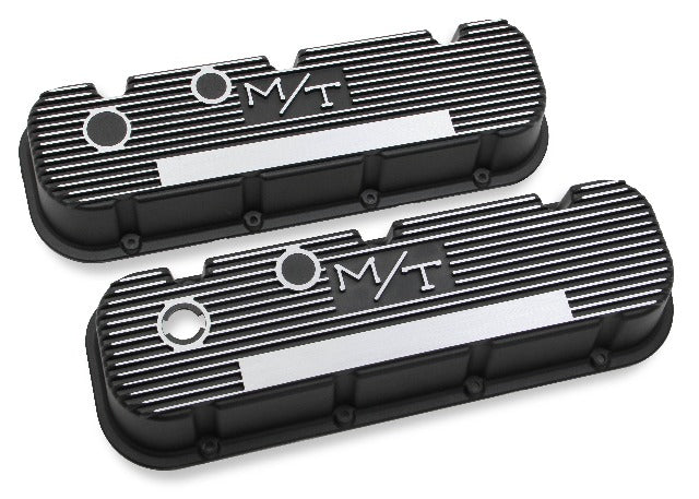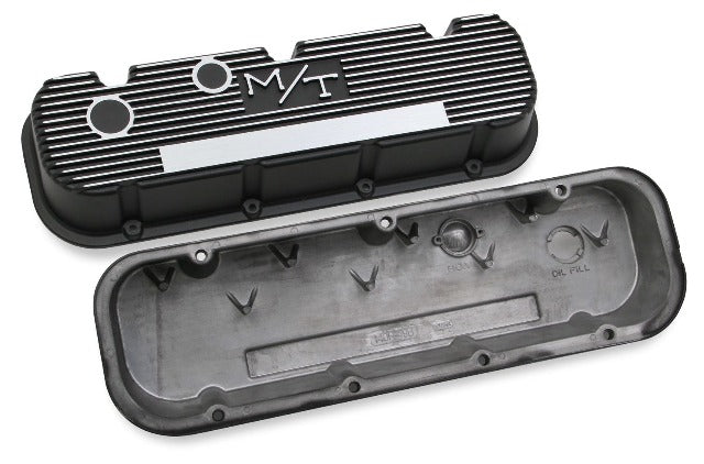 Flashback - 1972: Nothing was cooler than sporting around town in a hot rod with a Holley Double Pumper and M/T finned aluminum valve covers! Show everyone how cool you are and show up sporting those same parts today! For the custom engine, M/T offers a superior valve cover of polished aluminum for added cooling. Each die
