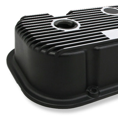 M/T Retro Aluminum Valve Covers; Vintage Style Finned; Cast Aluminum; Satin Black;