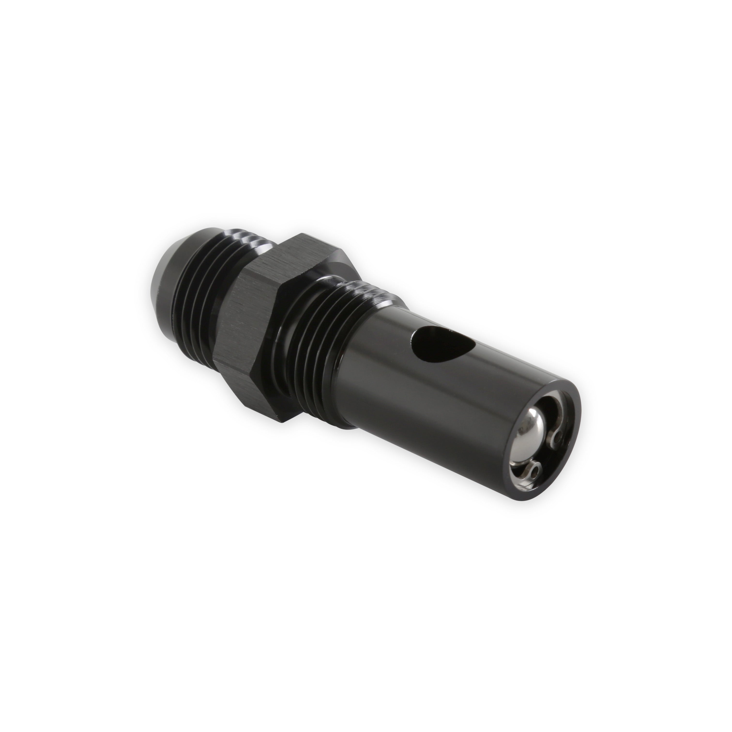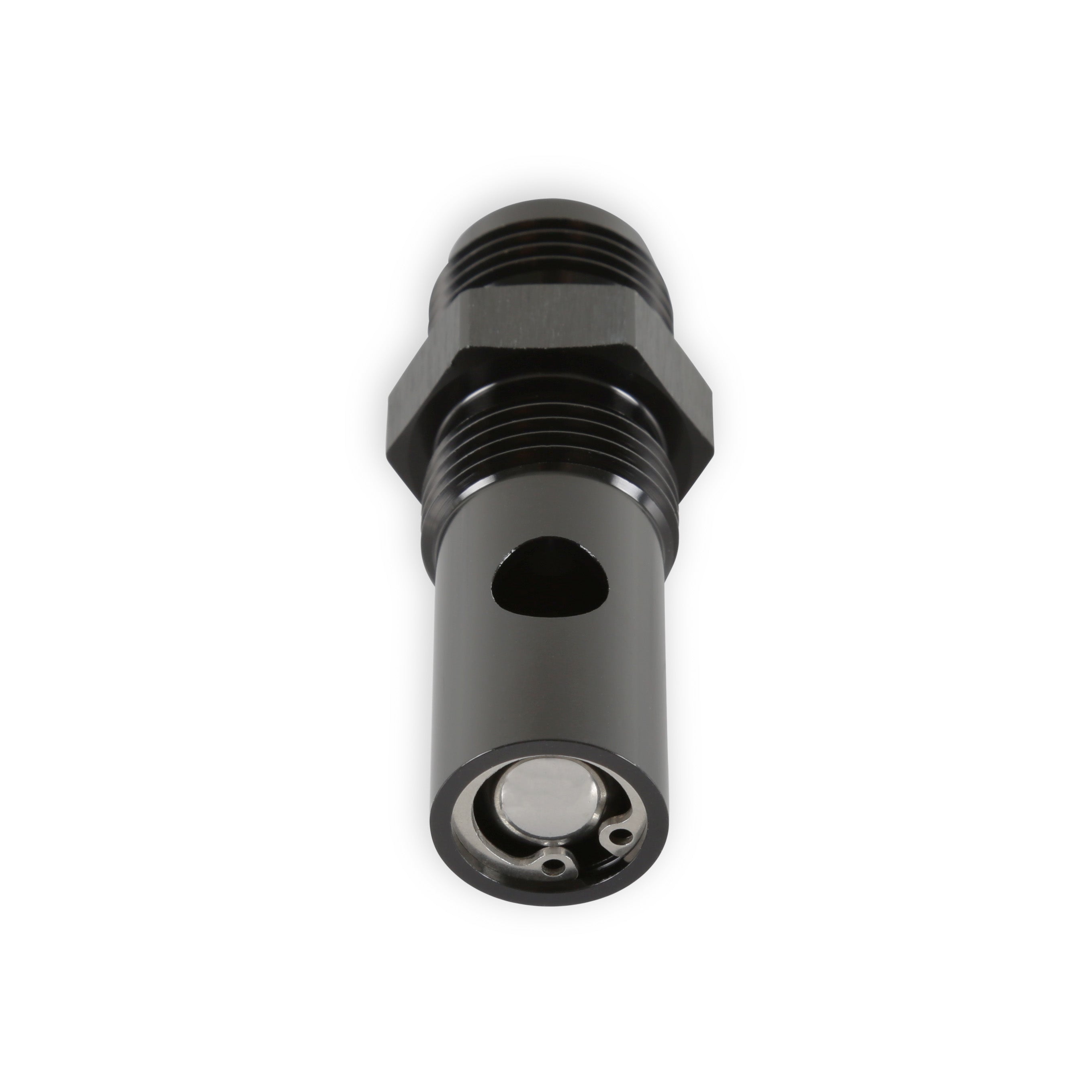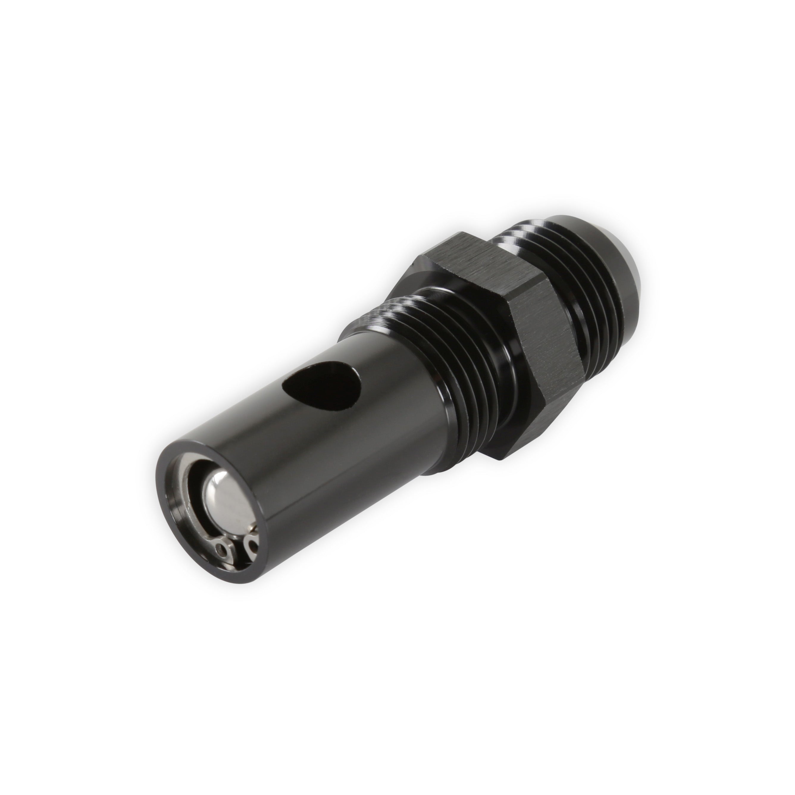 10AN ORB ROLLOVER VALVE;Fuel cell; race cell; aluminum cell;;Fuel Cell Rollover Valve;Holley Aluminum fuel cells come in a several variations for nearly every race application. They are offered in both flat bottom and rear sump variations to prevent fuel starvation under heavy acceleration. These fuel cells feature -10AN ORB fittings on the feed, return and vent ports, for high flow support and easy plumbing. They are made from 2.5mm thick 5052 TIG welded aluminum, with triangulated mounting tabs for added support and long-term reliability. The Holley aluminum fuel cells contain anti-slosh foam that is pre-cut to accept Holley fuel level senders. This foam is not E-85 compliant and should be removed if that fuel type is used. Compatible with the single and dual in-tank fuel pump modules.;Helps minimize and/or prevent fuel from coming out the vent port in case of a rollover;During normal operating conditions, valve allows fuel cell to breathe out the vent port;10AN ORB port to 10AN male;Low-profile design;Main body made of 6061-T6 aluminum;Anodized fitting prevents galling of threads and corrosion protection;Stainless steel sphere ball and snap-ring;Comes apart easily to be cleaned/serviced;Pump gas and E85 compatible
