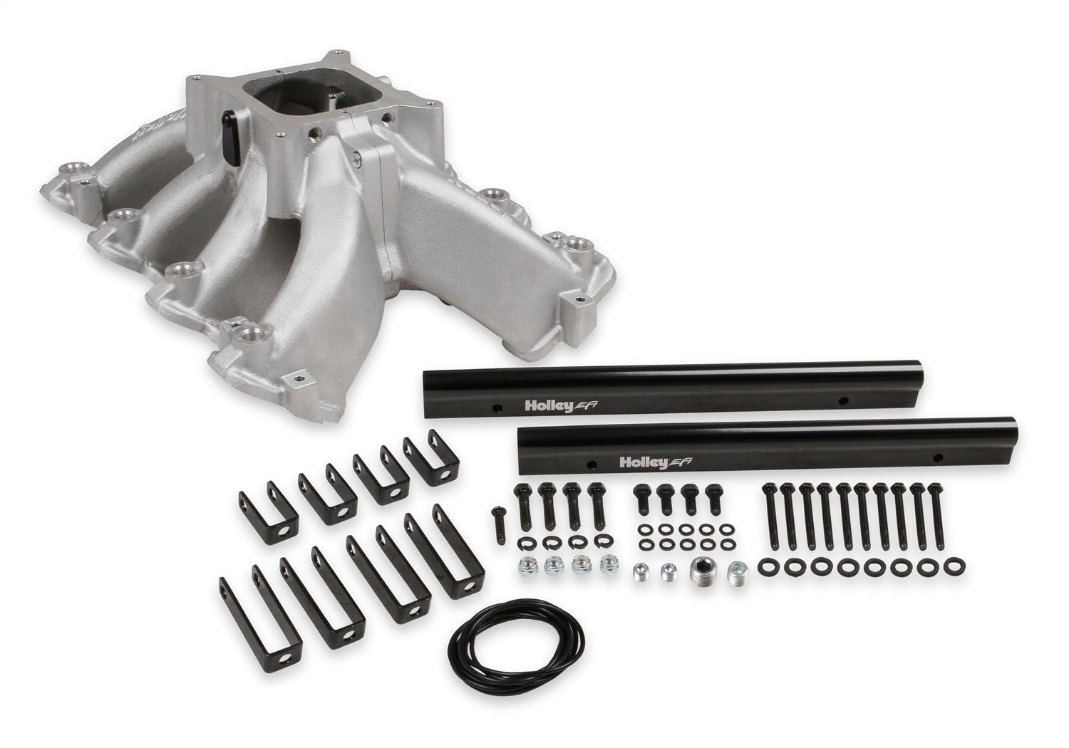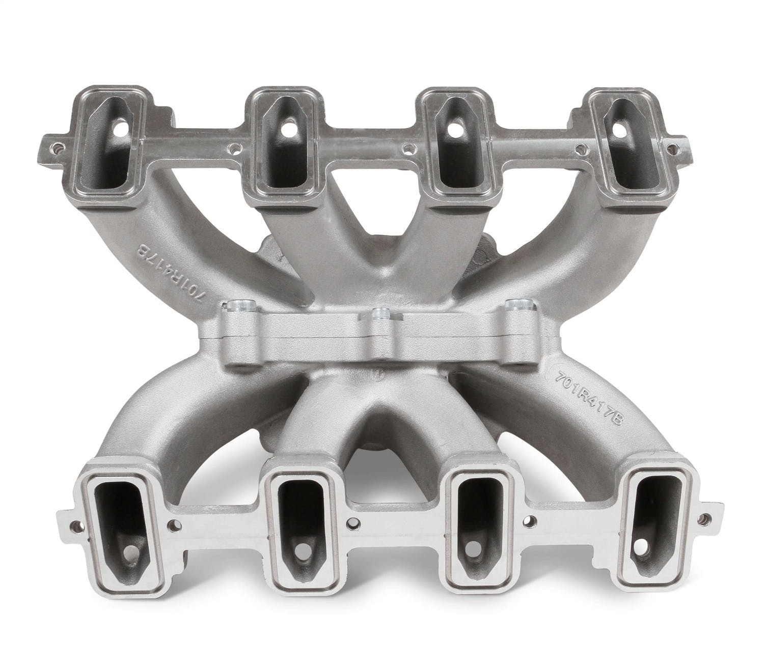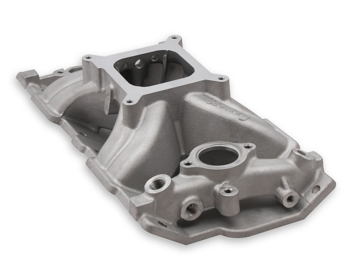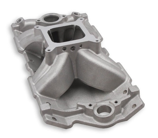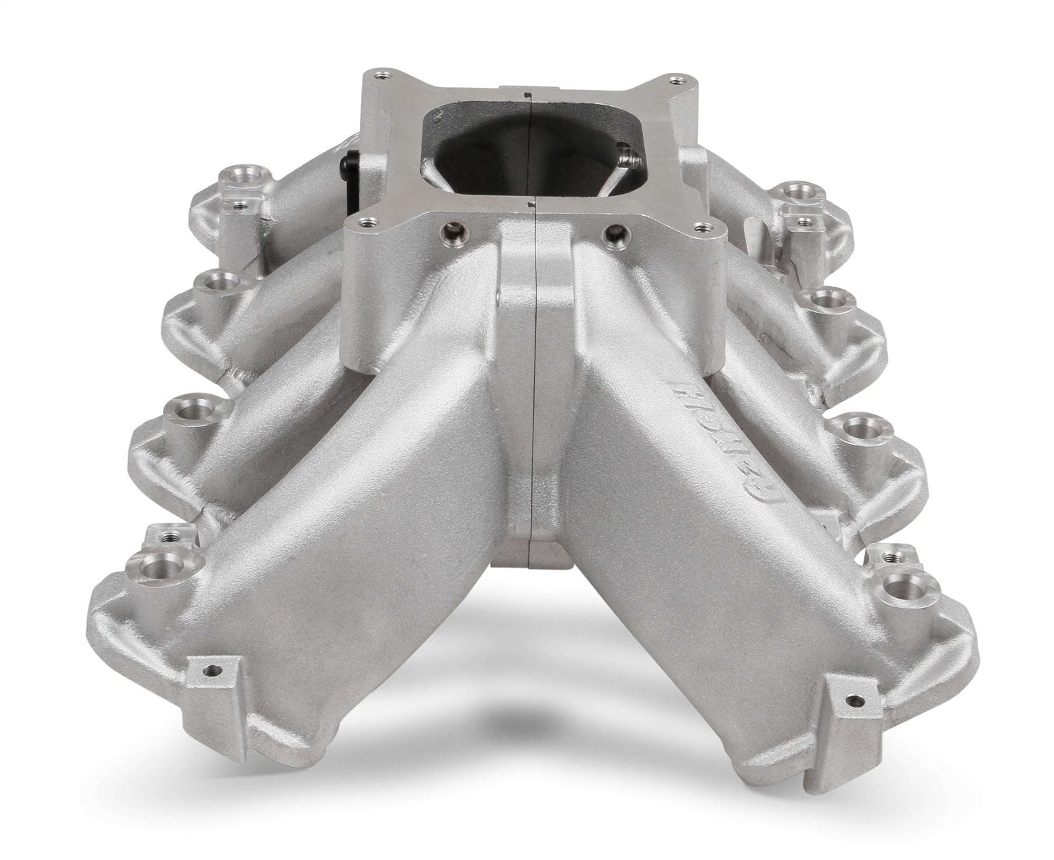 Single Plane Intake Manifold Kit; Carbureted; w/Cathedral Port Cyl. Heads; Front Height/Rear 7.32 in.; RPM Power Band 2500-7000; Satin Finish; For Use w/LS1/LS2/LS6;