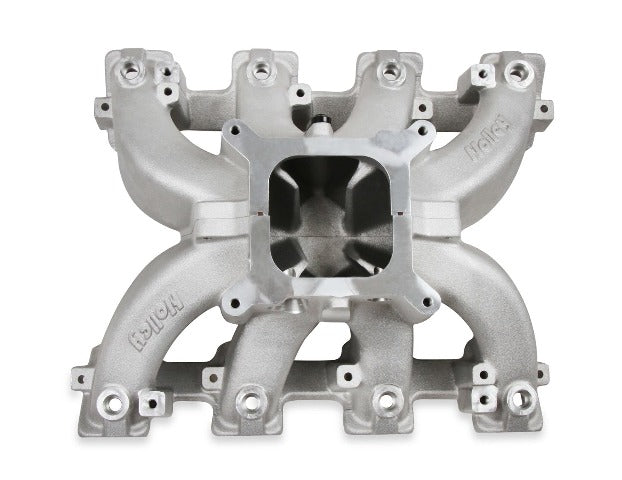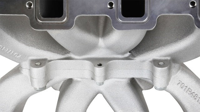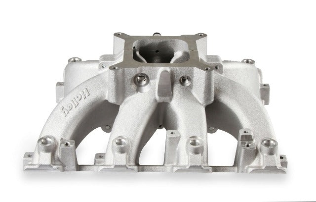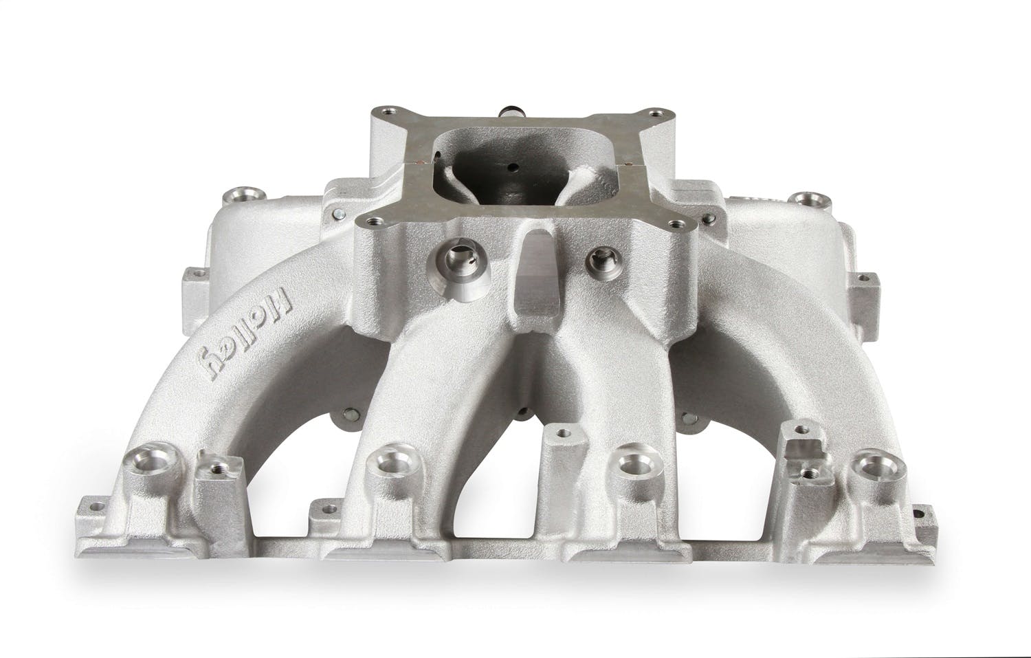The new Holley Single-Plane Race intake manifold were designed with performance in mind. They feature a race bred, two piece split feature that was previously only found on the most expensive race intakes. The manifold will fit GM LS Gen III engines with LS3/L92 heads and are intended for 4150 style square bore flanged carburetors or throttle body EFI. The LS Race single-plane intake manifold was designed for hi-performance/racing engine applications, 5.3 to 6.2+ liter displacement, and maximum engine speeds of 6000-7000 rpm, depending on the engine combination. This single-plane design provides optimal performance across the RPM spectrum while providing maximum performance up to 7000 rpm. The Holley LS Race manifold incorporates a split feature, which allows disassembly of the intake for direct access to internal plenum and port surfaces, making custom porting and matching a snap. With shoulder bolt locators and O-ring seal, reassembly is simple and precise.
