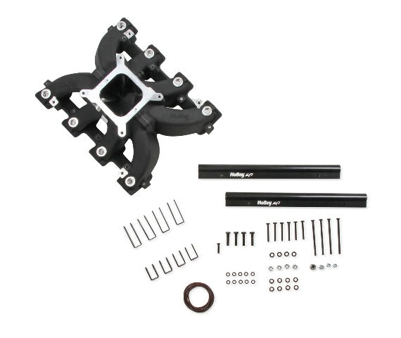 EFI Intake Manifold; Power Band 2500-7000 RPM; Square Bore; 4150 Style Flange; Split Single Plane Design; Black; Black Finish;