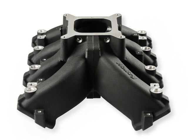 The new Holley Single-Plane Race intake manifold were designed with performance in mind. They feature a race bred, two piece split feature that was previously only found on the most expensive race intakes. The manifold will fit GM LS Gen III engines with LS3/L92 heads and are intended for 4150 style square bore flanged carburetors or throttle body EFI. The LS Race single-plane intake manifold was designed for hi-performance/racing engine applications, 5.3 to 6.2+ liter displacement, and maximum engine speeds of 6000-7000 rpm, depending on the engine combination. This single-plane design provides optimal performance across the RPM spectrum while providing maximum performance up to 7000 rpm. The Holley LS Race manifold incorporates a split feature, which allows disassembly of the intake for direct access to internal plenum and port surfaces, making custom porting and matching a snap. With shoulder bolt locators and O-ring seal, reassembly is simple and precise.